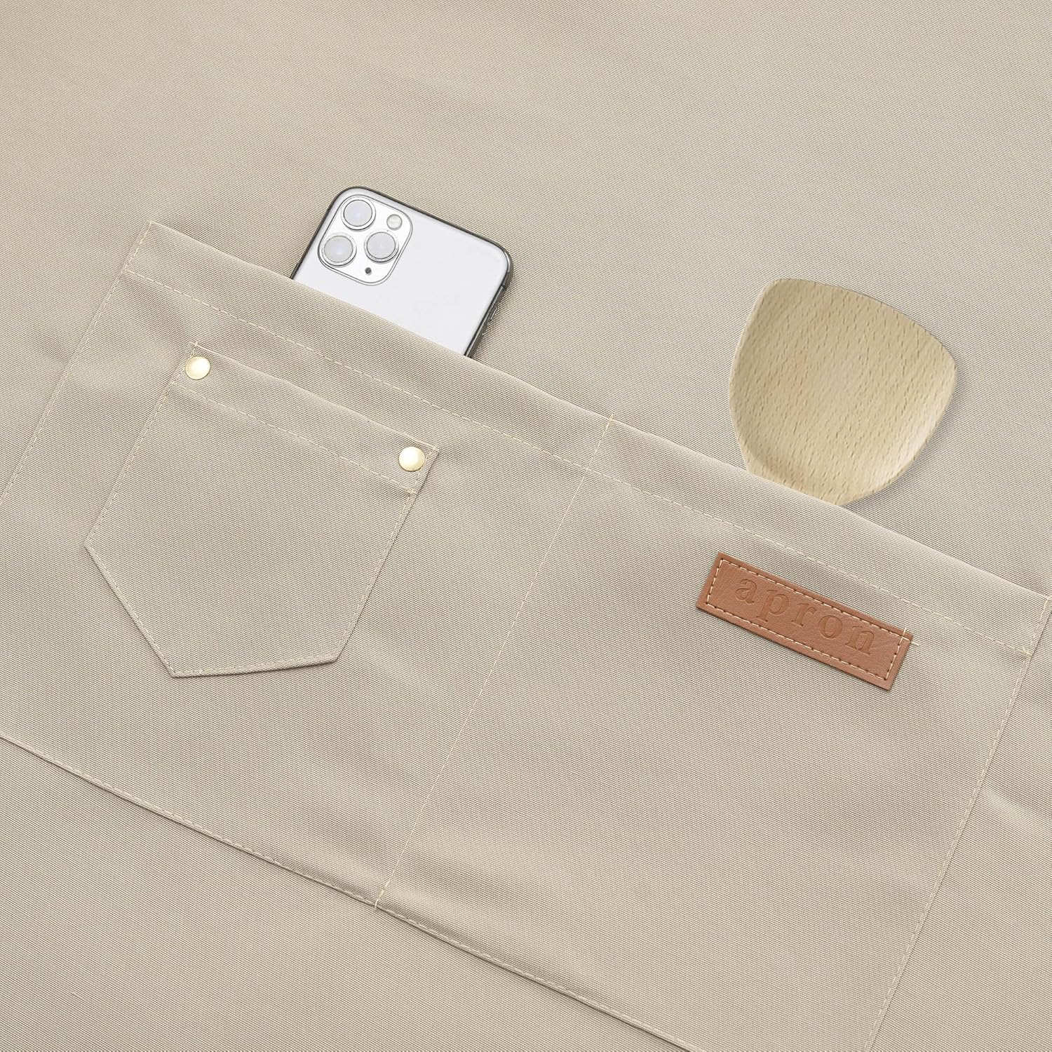 - 【Apron With Large Pockets 】Our kitchen apron has 2 large pockets in the middle of apron, and spacious divided pocket can give you enough place to hold into meat thermometer, grill slips, phones, recipe cards, seasoning packets, recipe cards, pen and phone etc.