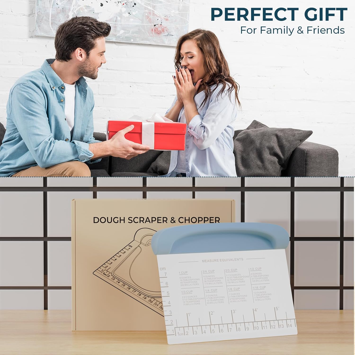 Bench Scraper Dough Cutter Tool - Pastry Scraper for Bread Cake Pizza, Bench Knife Kitchen Dough Scraper for Baking, Stainless Steel Food Scraper with Grip Handles & Measuring Scale, Blue