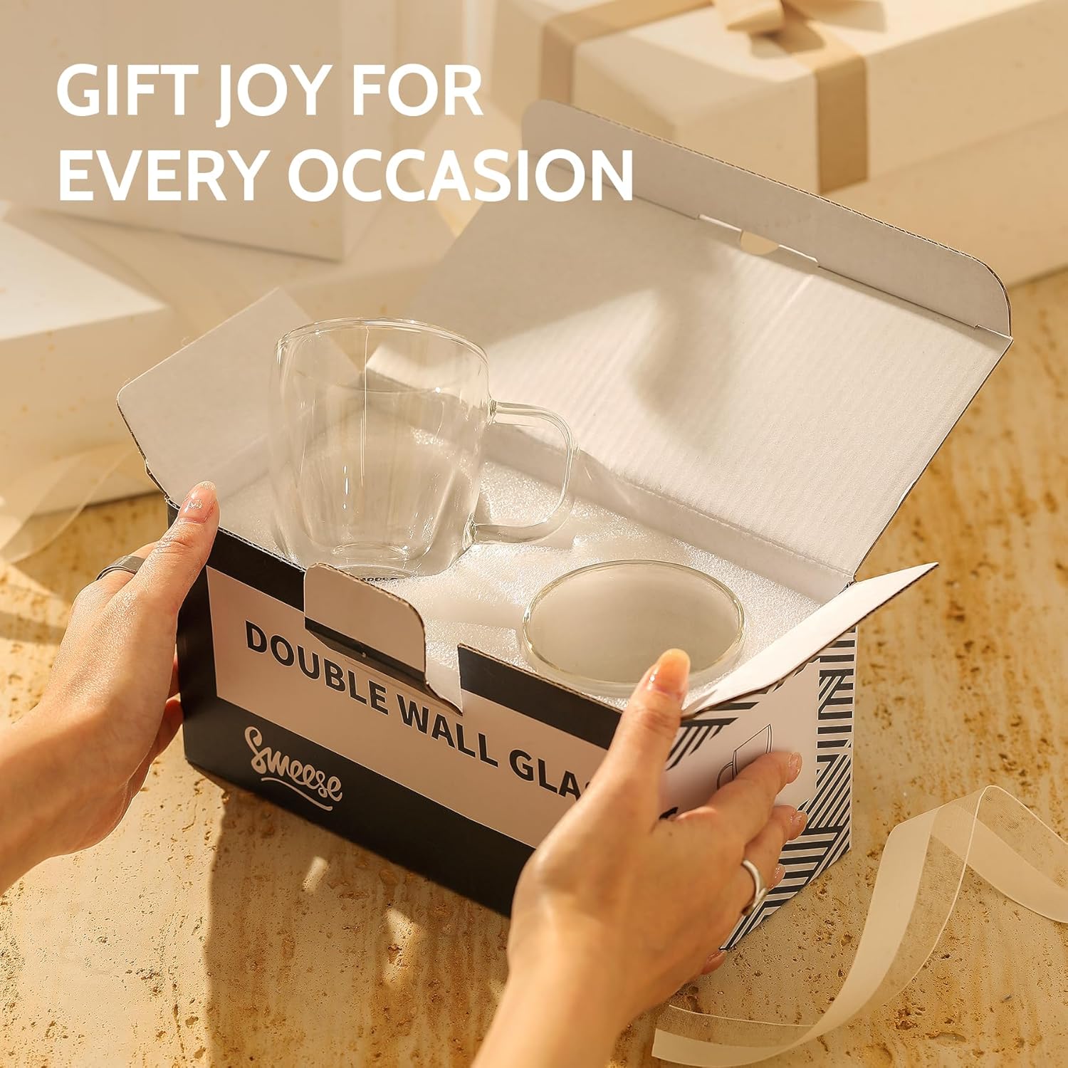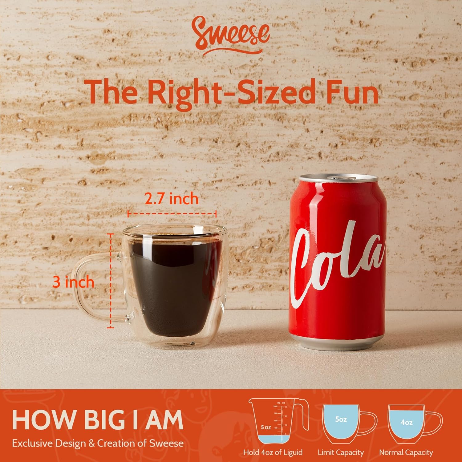 Sweese 5oz Double Wall Glass Espresso Cups Set of 2, Espresso Shot Cups Perfect for Cappuccino, Latte, Tea