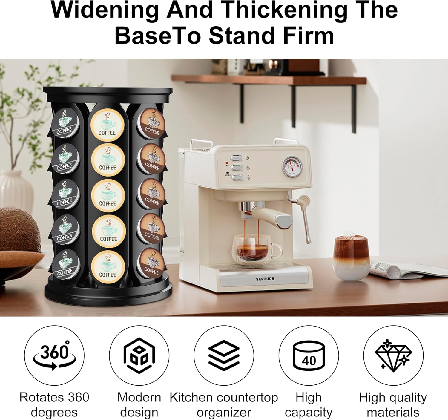 - Spacious & Compact Storage: Holds up to 40 coffee capsules, keeping your kitchen organized while saving space. Ideal for coffee lovers with a variety of flavors and blends.