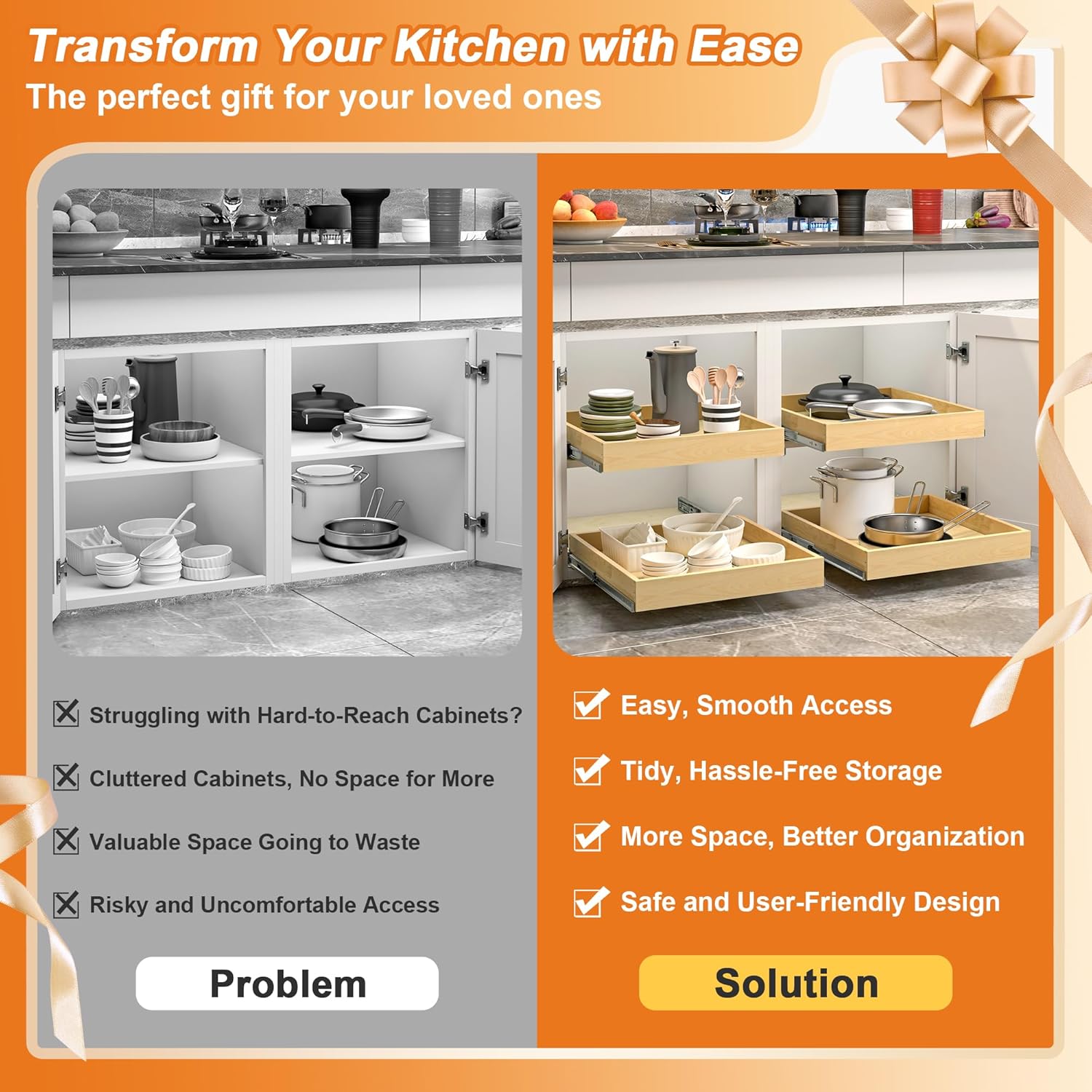 - Soft-Close, Full-Extension Performance - These cabinet pull out shelves feature full-extension soft-close slides for smooth, quiet performance. Designed for everyday convenience, the pull out cabinet drawer makes it easy to access hard-to-reach items, helping you stay organized and maximize your storage space