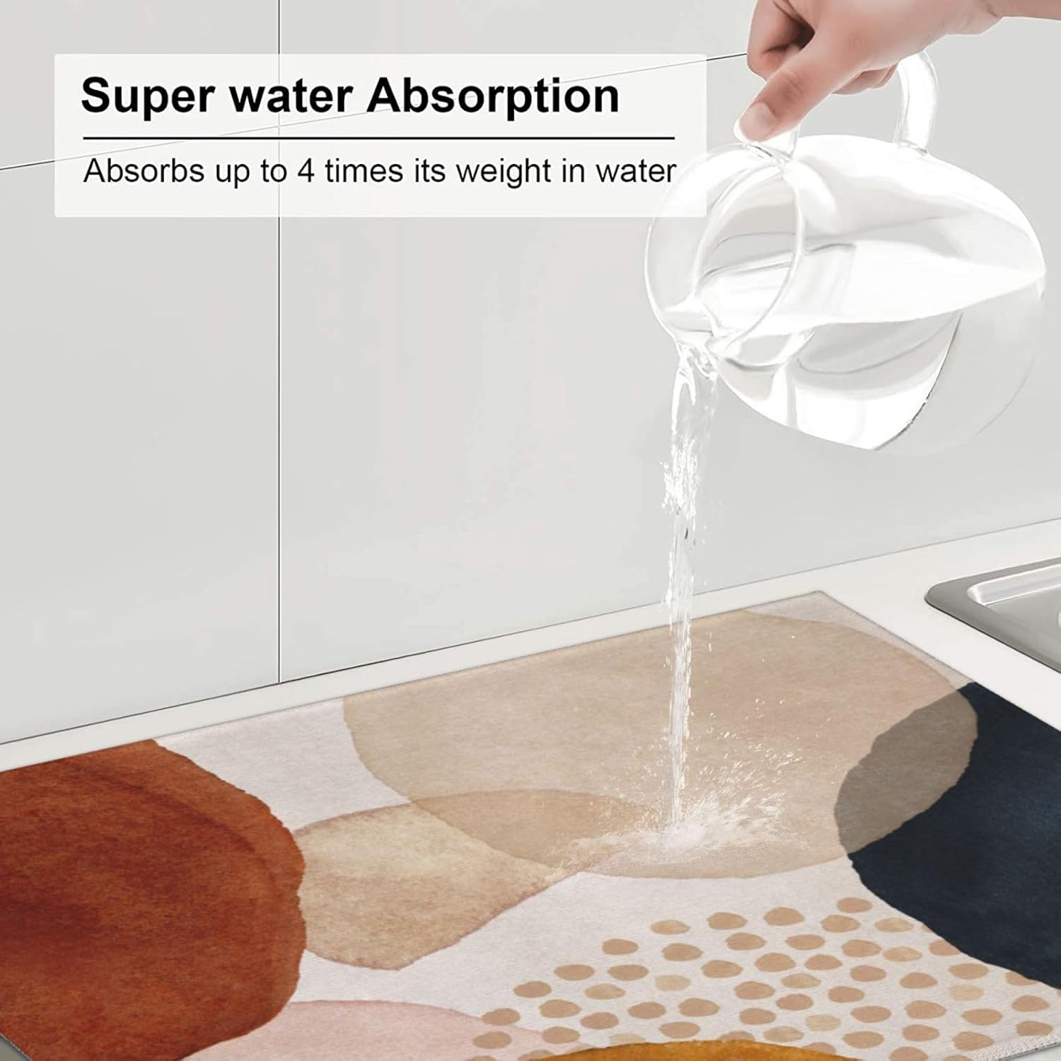 - 【Strongly Absorbent】Our Dish Drying Mat Is A 3-Ply Design Made Of Absorbent Microfiber, Composite Sponge, And Polyester Fabric, The Dish Drying Pad Absorbs 4x Its Weight In Water. Perfect For Air-Drying Dishes, Glasses, Pots, Pans, Bottles, Fruits, And Vegetables