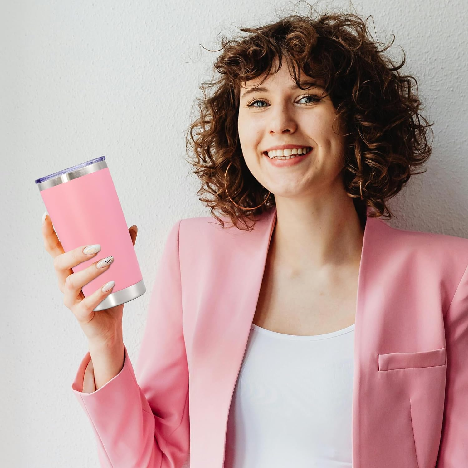20 oz Tumbler with lid Double Wall Vacuum Insulated Tumblers Stainless Steel Coffee Mug Travel Coffee Tumbler Powder Coated Tumbler Cup Keep Hot&Cold - (Pink 6 Pack)
