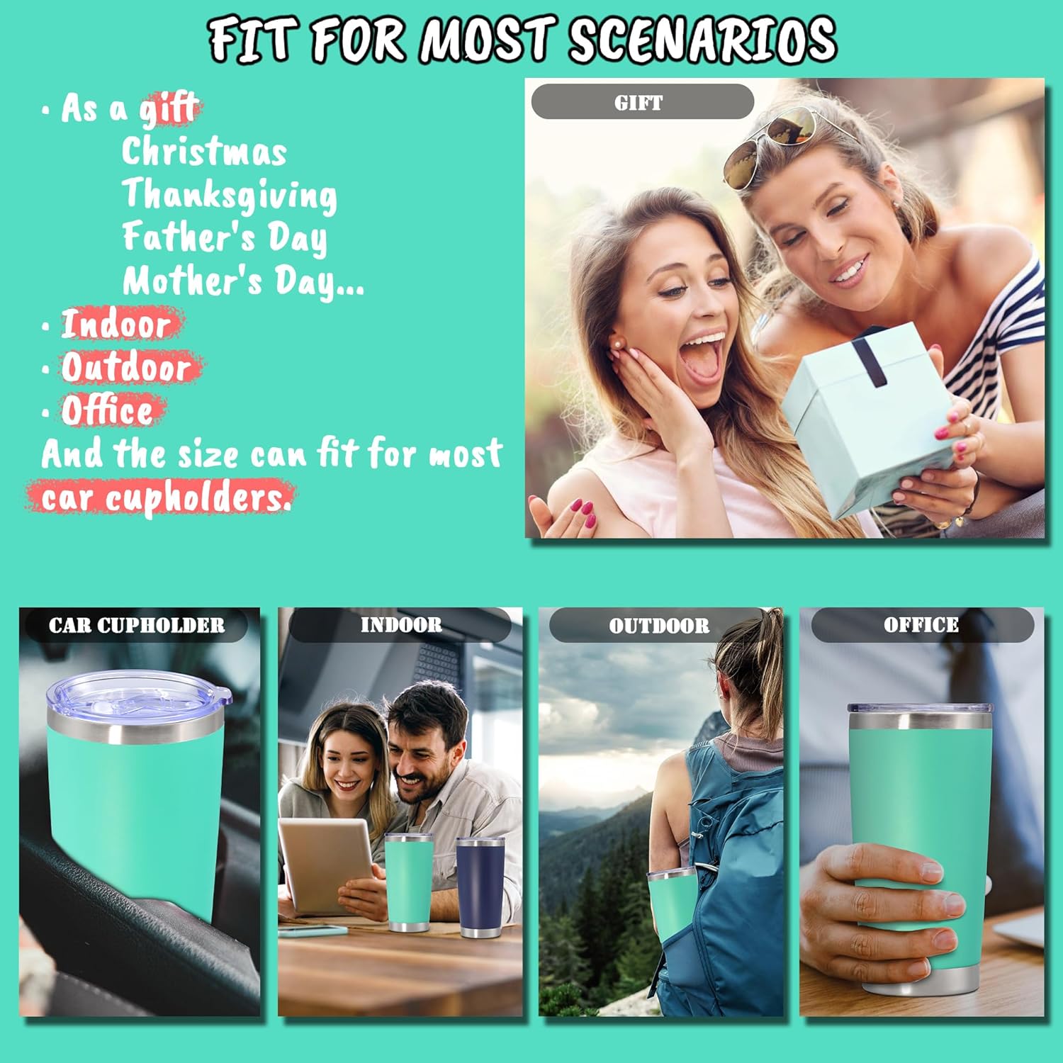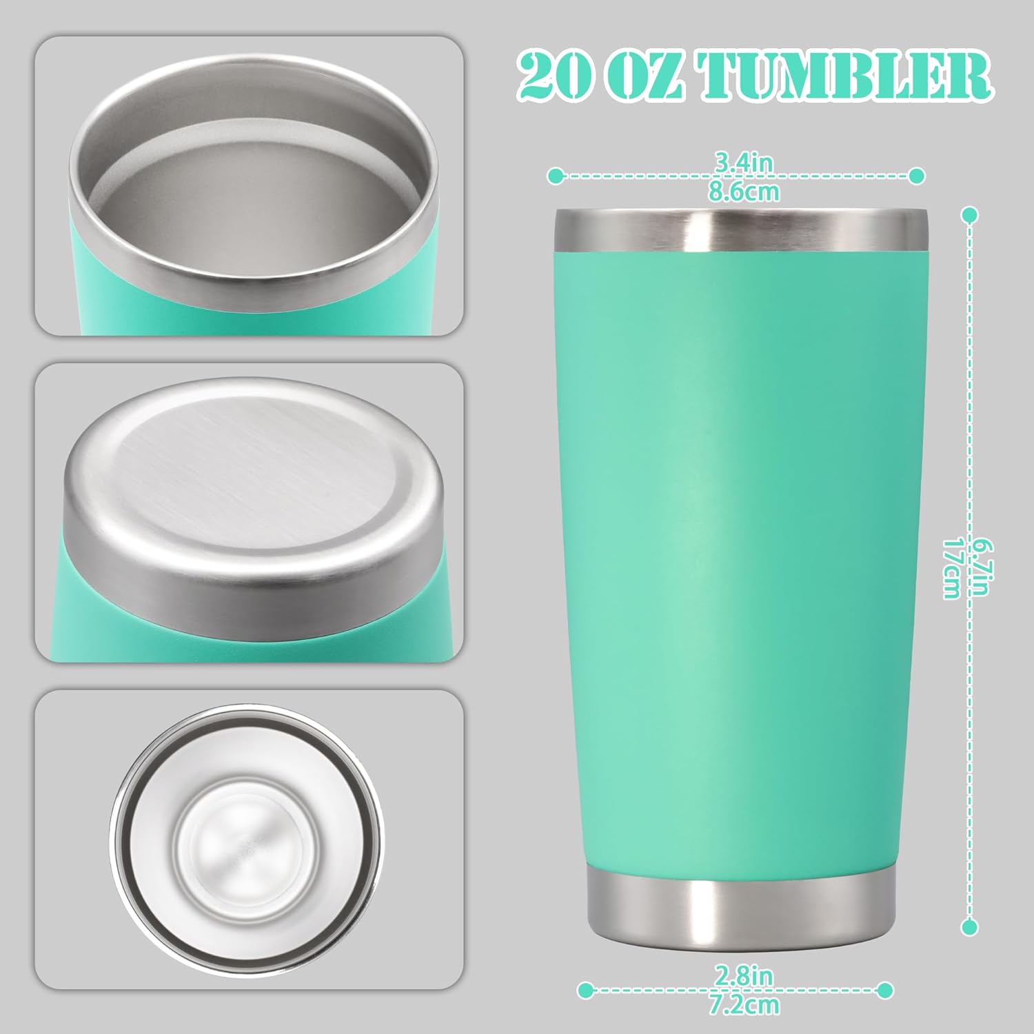 - SIZE & FITS CAR CUPHOLDER - The capacity of the tumbler is 20 oz and the smooth design of the tumbler body makes it suitable for most car cupholders. In addition, the tumbler can also be easily held