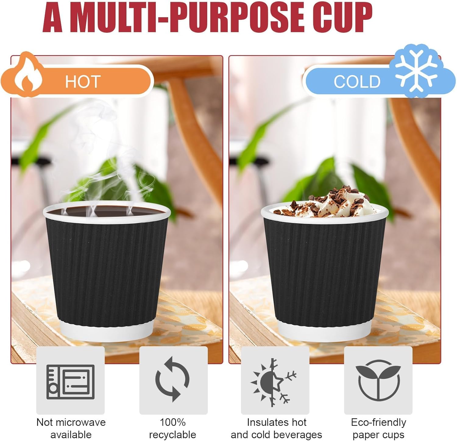 240Pack Paper Espresso Coffee Cups, 4 oz Disposable Coffee Cups,Corrugated Insulated Ripple Wall, Paper Ripple Cups for Coffee, Hot Chocolate and Hot Tea Drinks -Black