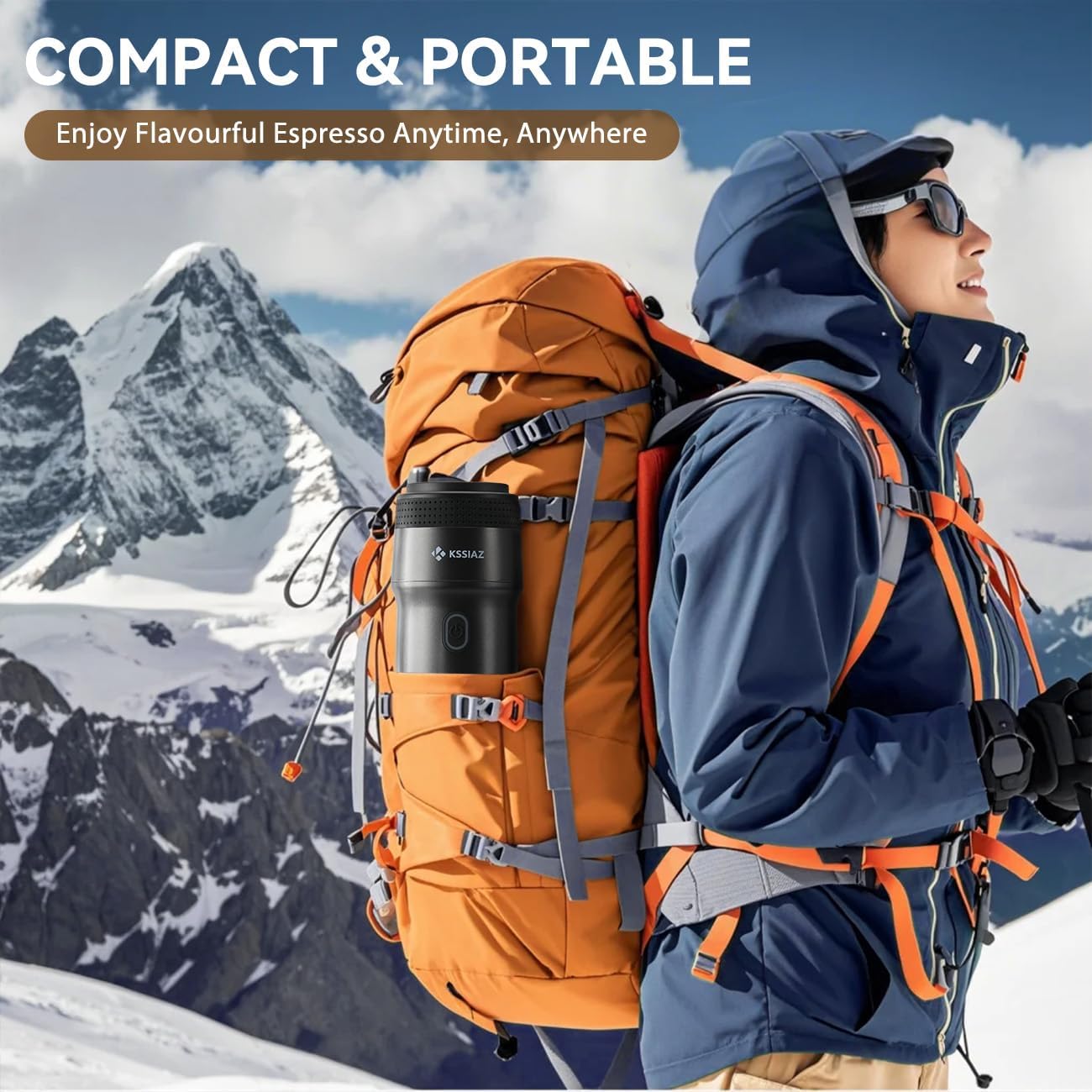 - 【Portable Design】With a compact design, the electric espresso maker weighs 2.4 lbs and is only the size of a water bottle. It is portable and perfect for camping, travelling and hiking. This coffee maker is compatible with 12V car charging, so you can charge it wherever you go
