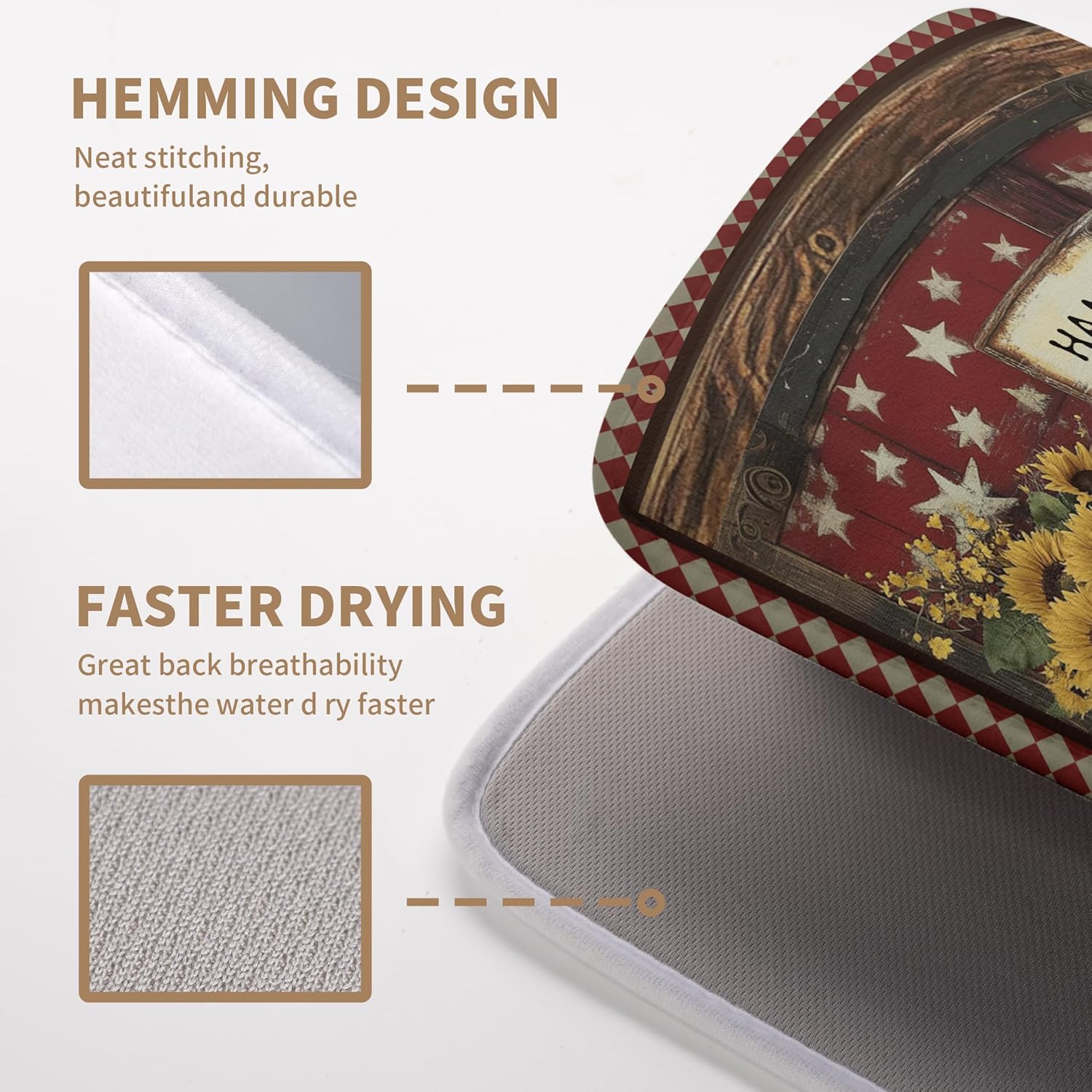 - [Material]: The surface of this Summer Sunflower Farmhouse dish drying mat kitchen drying mat is made of absorbent microfiber and the middle is made of composite sponge.Vintage Farmhouse autumn microfiber dish drying mat can be easily rolled up and folded for storage or hanging.