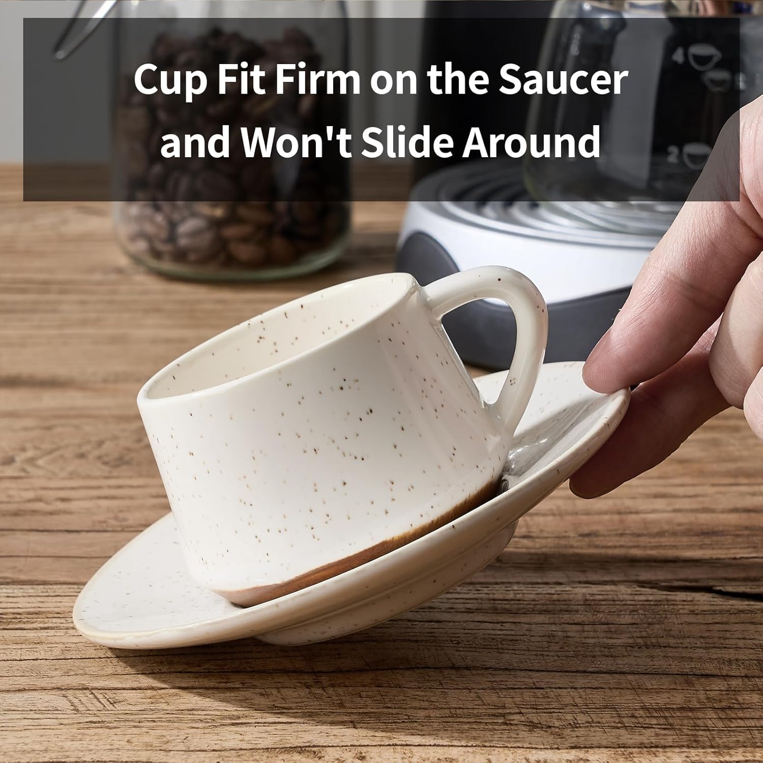 - Safe for Dishwasher,Microwave Safe----The sleek ceramic glaze makes it easy to clean the coffee stains.This rustic cafe cups set gives off an uncomplicated and polished allure.It's perfect for serve up piping hot cups of coffee, tea, signature lattes, and other warm, indulgent beverages.