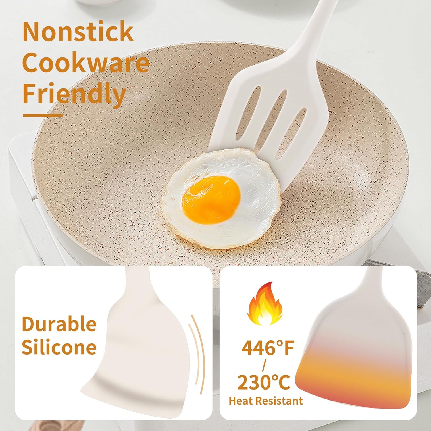 - NONSTICK COOKWARE FRIENDLY: Soft durable silicone cooking utensils set prevent scratching your non-stick cookware. Extend the life of your kitchenware. (Please CHECK THE SIZE before purchase !)