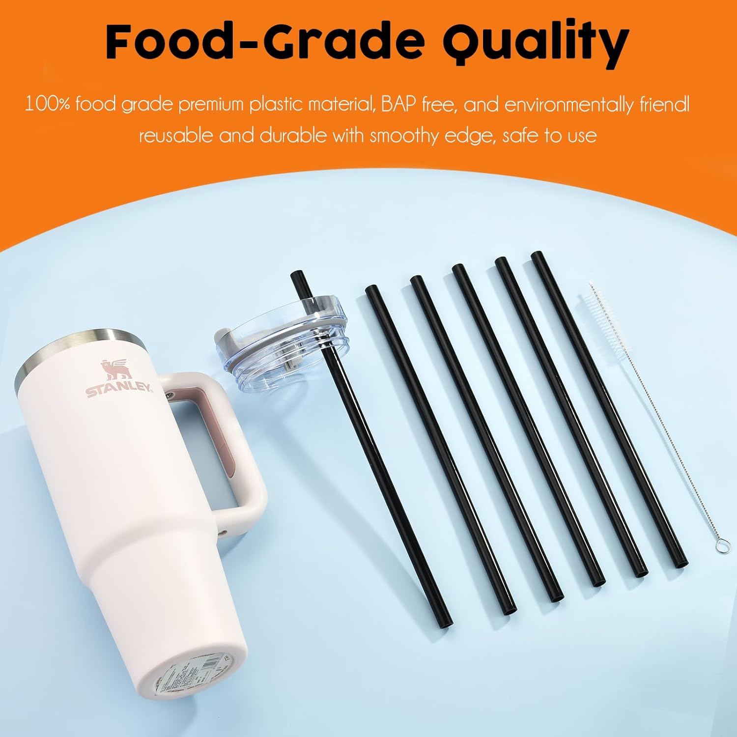 ALINK Black Replacement Straws for Stanley 30 oz Tumbler, DISHWASHER SAFE, 6 Pack Reusable Plastic Straws Compatible with 30oz Stanley Adventure Quencher Cups, Plus Brush
