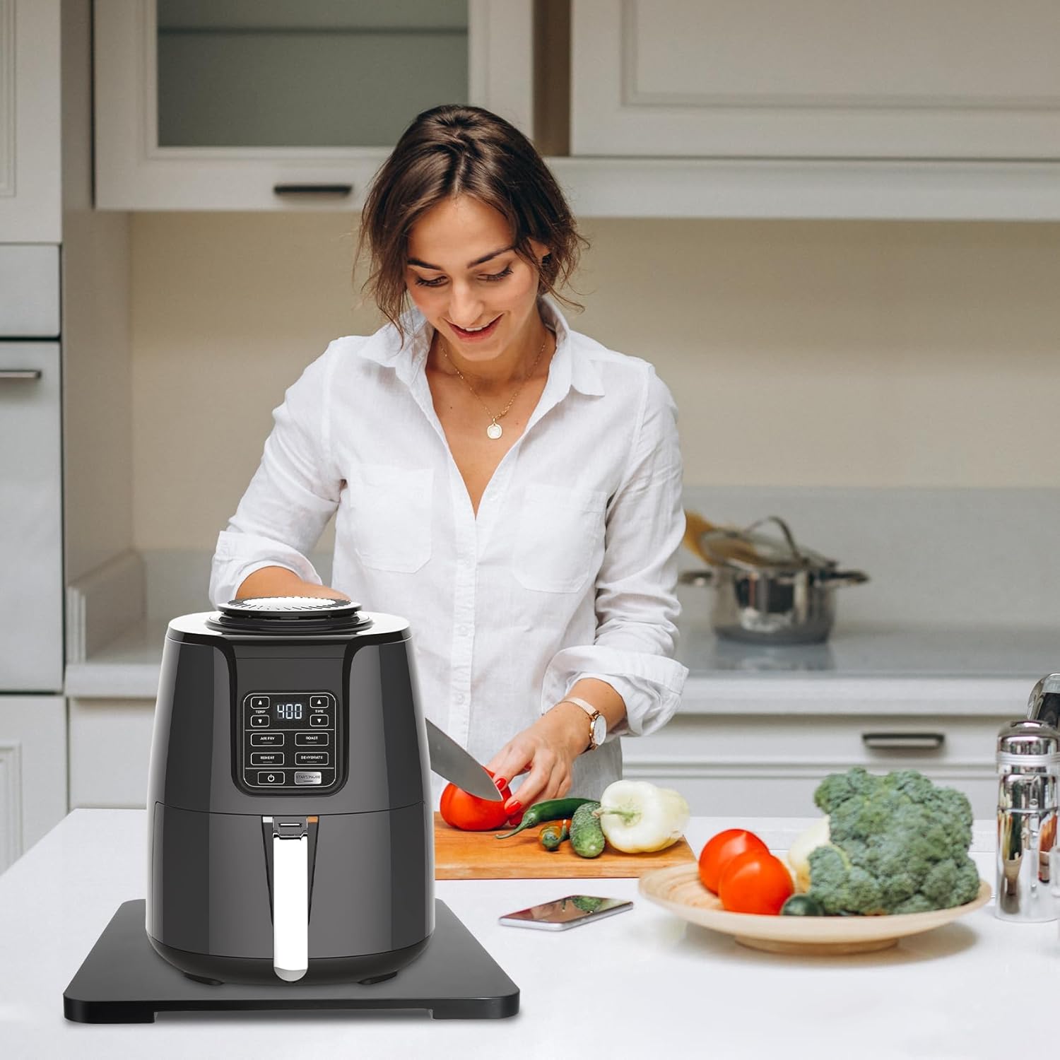 - 【Necessary Kitchen Accessory】Simple and elegant styling appearance, you can easily pull out the coffee maker or air fryer from underneath the cabinet, make full use of your countertop space and keep your kitchen well organized.