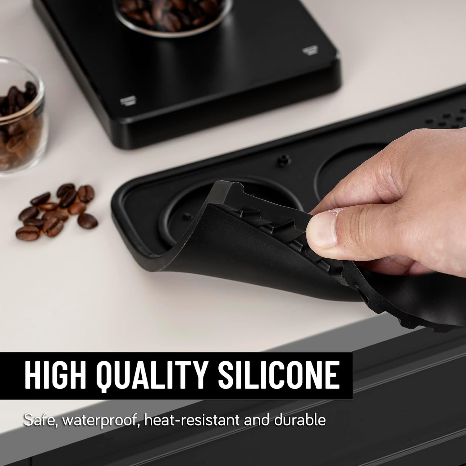 - 【Easy to Clean】No complicated cleaning required—just rinse with water. The raised edges around the mat keep coffee grounds in place, ensuring a clean and efficient setup