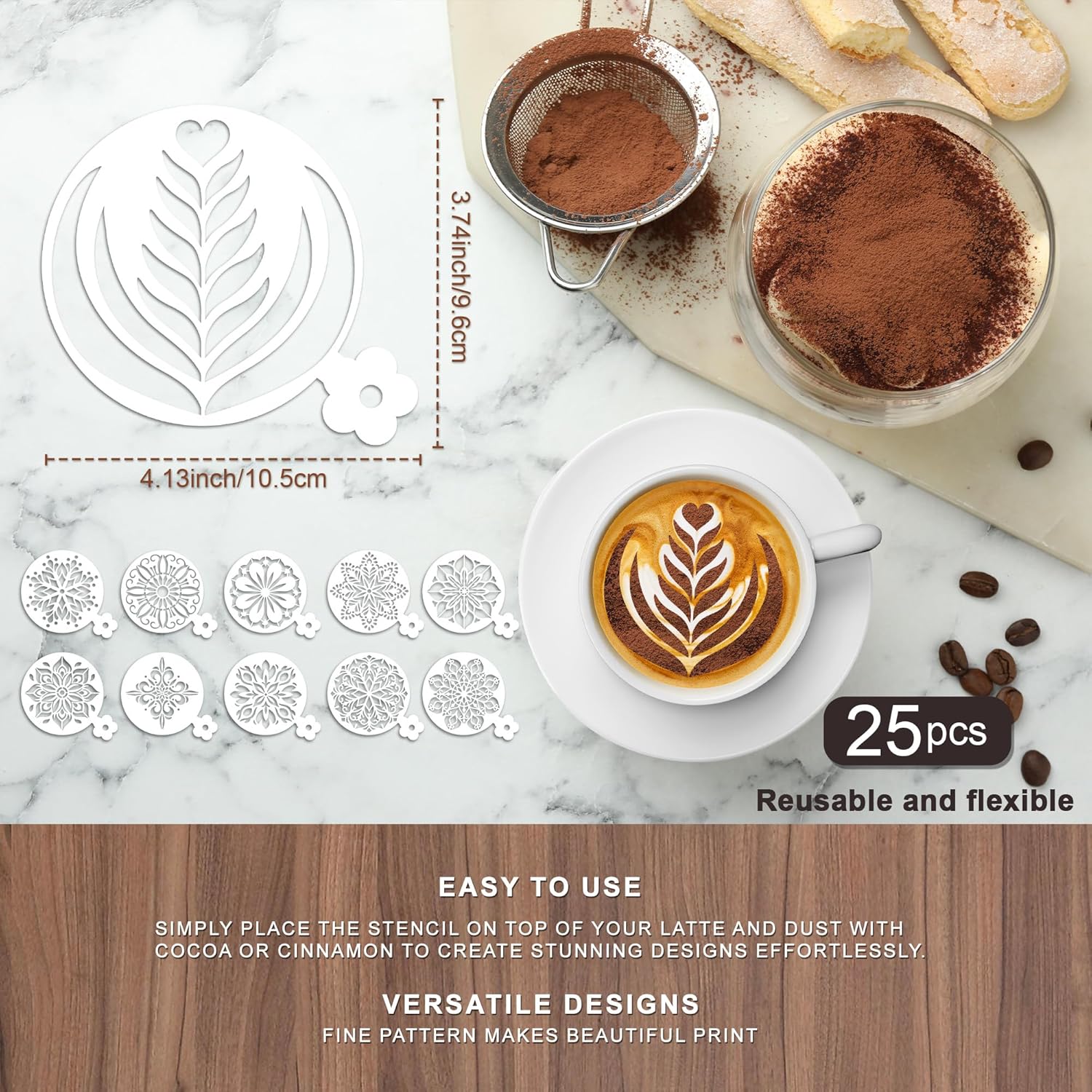 - Easy to Use: Simply place the stencil on your cake or coffee; Then sprinkle with sugar, food colouring or powder to easily get a beautiful pattern to enhance the appeal of your food
