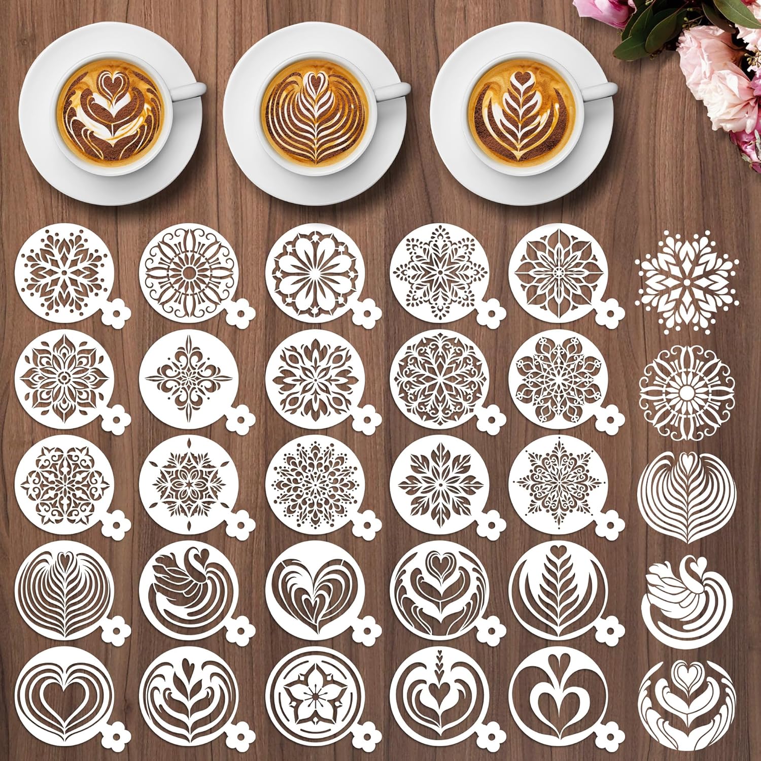 - Widely Used: The baking stencils are of moderate size, perfect for making all kinds of mousses, cupcakes, lattes, desserts, making your food more attractive