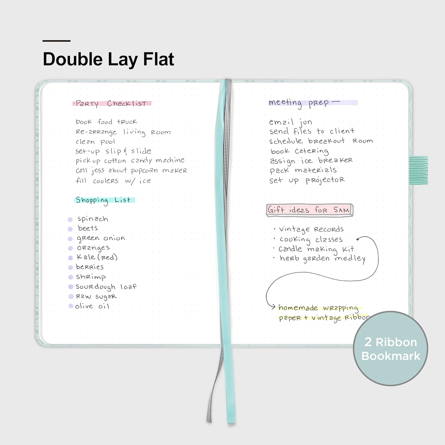 - 180° LAY-FLAT DESIGN: The lay-flat design allows for easy writing and ensures that you can utilize every page efficiently. Journaling, note-taking and planning has never been easier! 2 Bookmarks to help you find important content faster