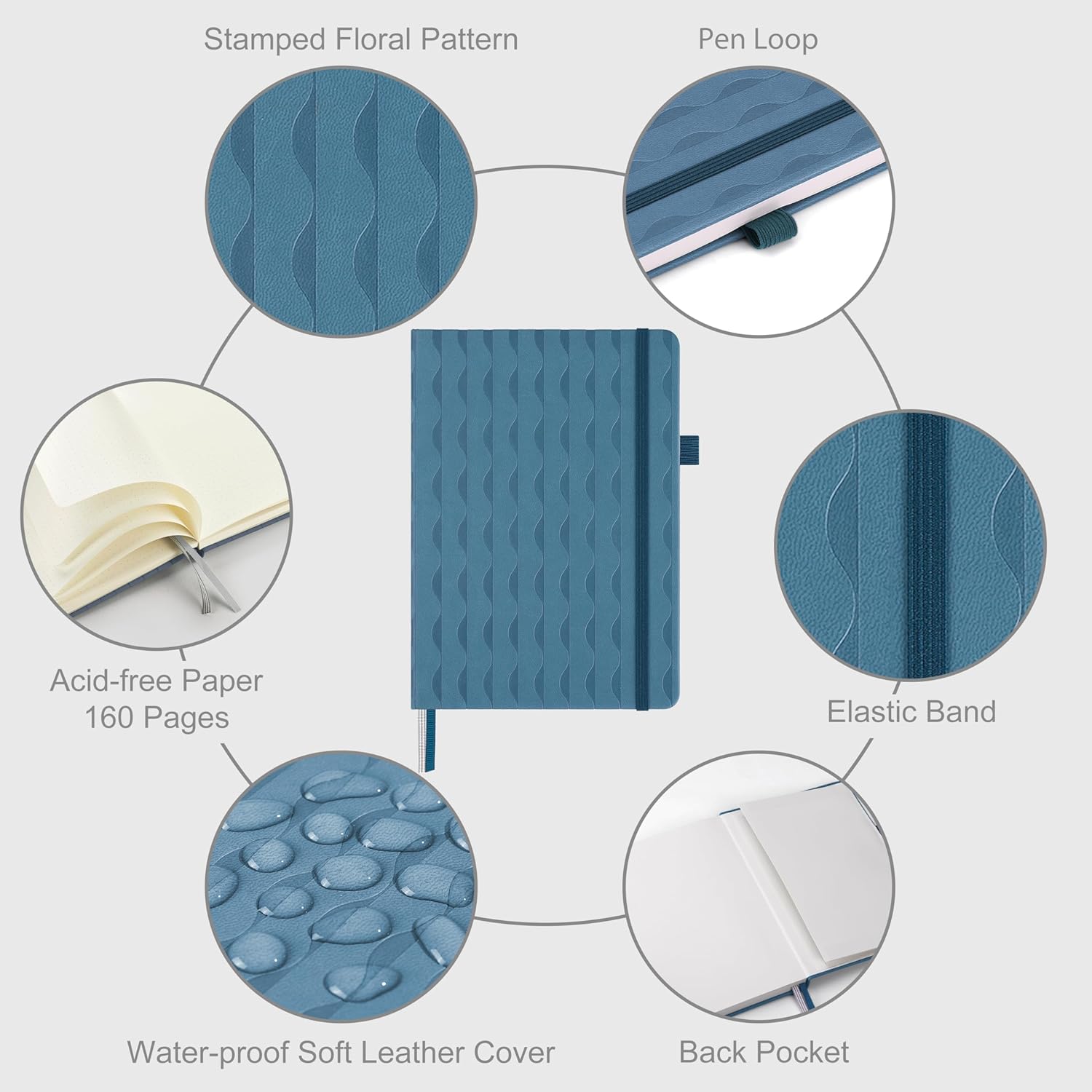 &And Per Se Dotted Journal Notebook for Women&Men with Pattern, A5 Leather Hardcover, 160 Pages 100GSM Thick Dotted Paper, 3 Sheets of Stickers Included(Blue)