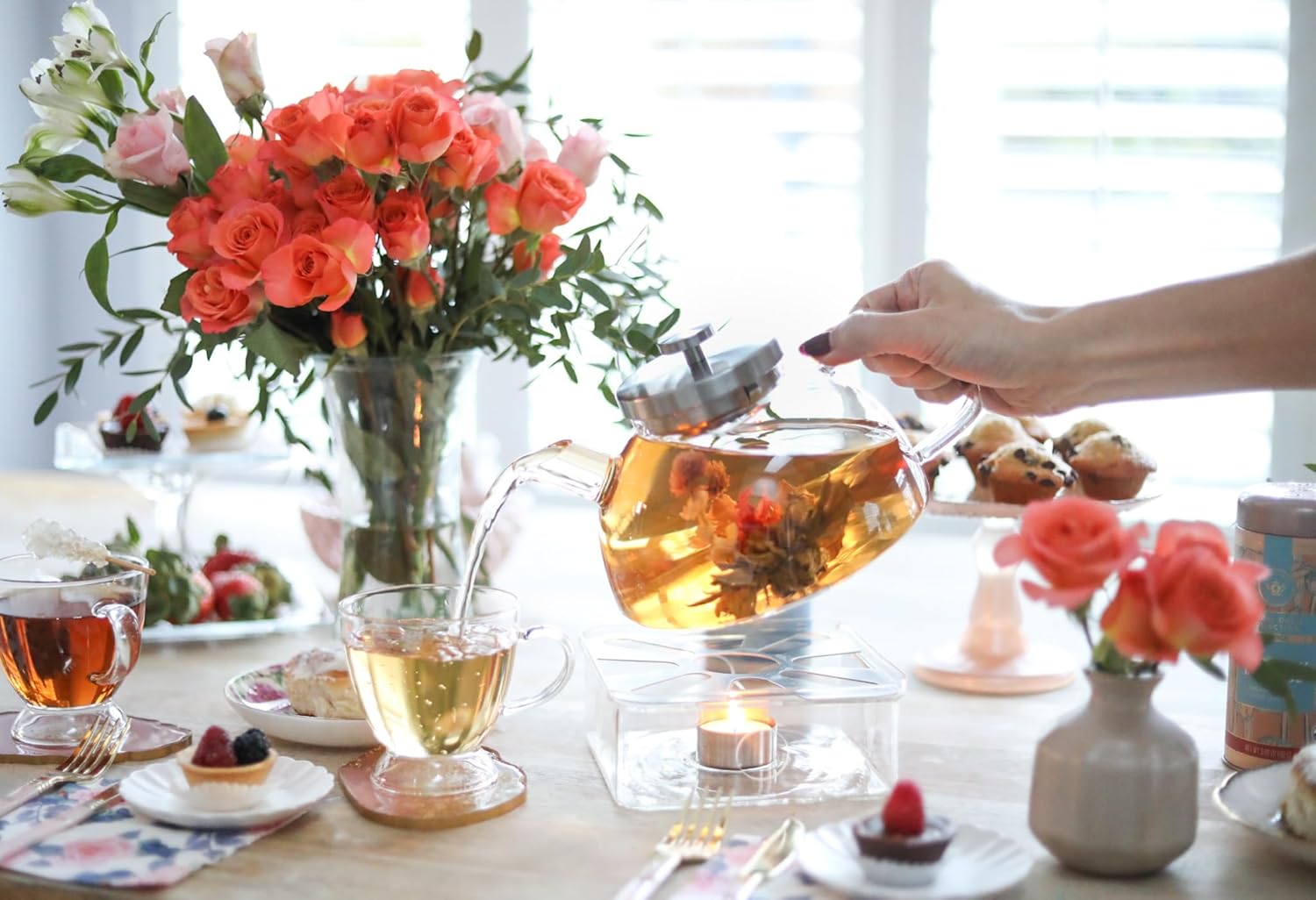 Teabloom Balance Borosilicate Glass Tea Kettle & Teapot – Stovetop-Safe, 40oz – Deep Loose Tea Infuser for Hot & Iced Tea – Elegant & Versatile Design for Tea Connoisseurs