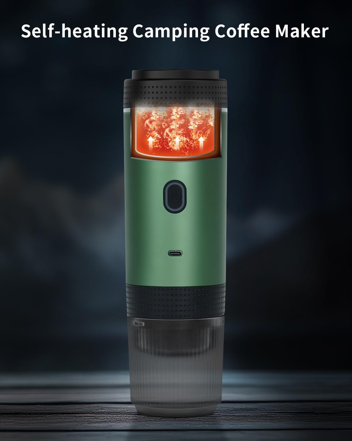 - Fast Self-Heating & Rich Crema: In just 3-5 minutes, the self-heating system heats 2.7oz of water from 76°F to 187°F, while the 20-bar pressure ensures smooth espresso extraction with a rich, velvety crema. Get professional-quality results in no time! 20 Bar Mini Small 5V Car Coffee Maker for Travel Camping