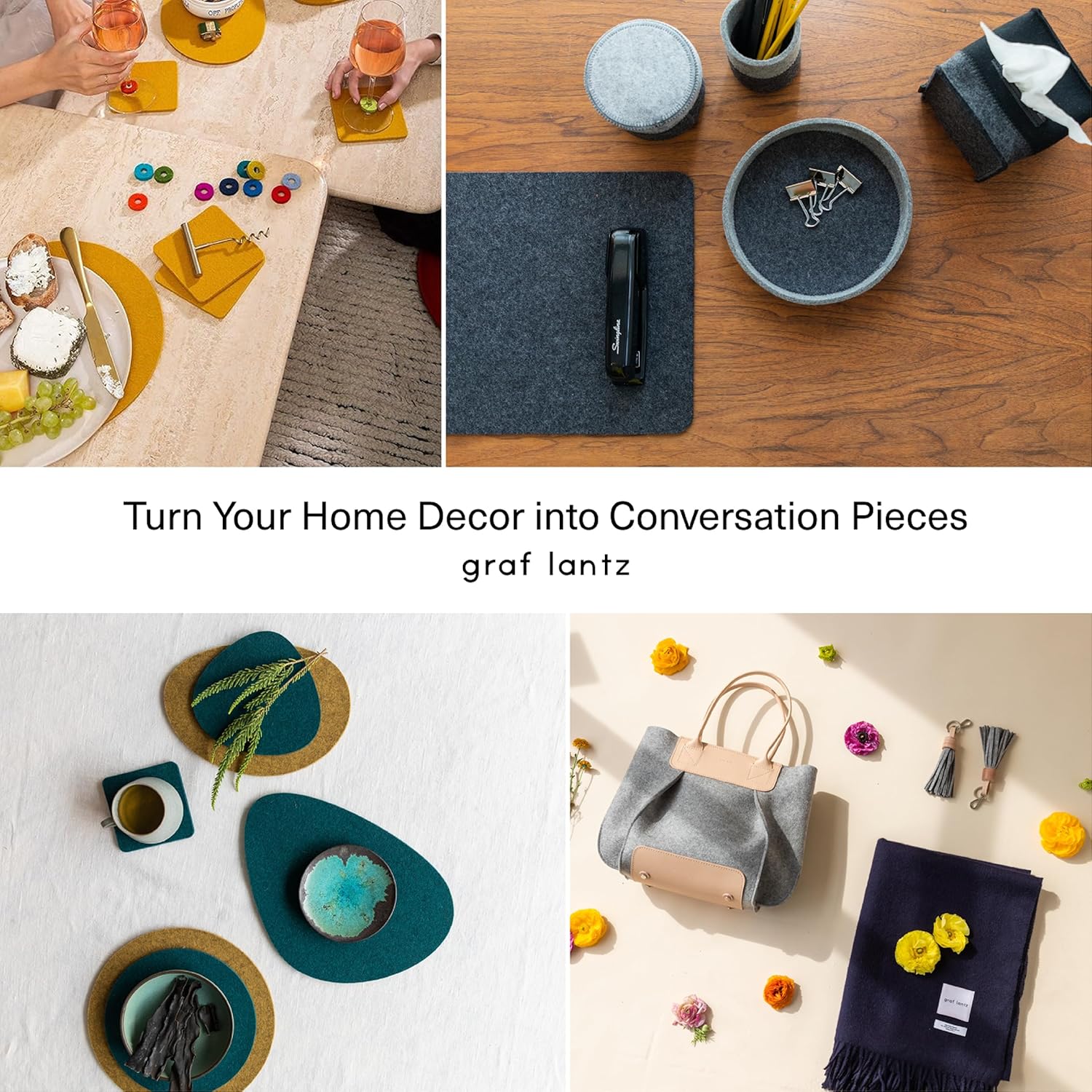 Graf Lantz - Bierfilzl Merino Wool Square Coasters Set of 4 - Chic (4"x4"x5mm) - Absorbs 30% of Weight - Natural German Wool - Heat Resistant, Sustainable, Reusable - Home Decor, Coffee Table Decor