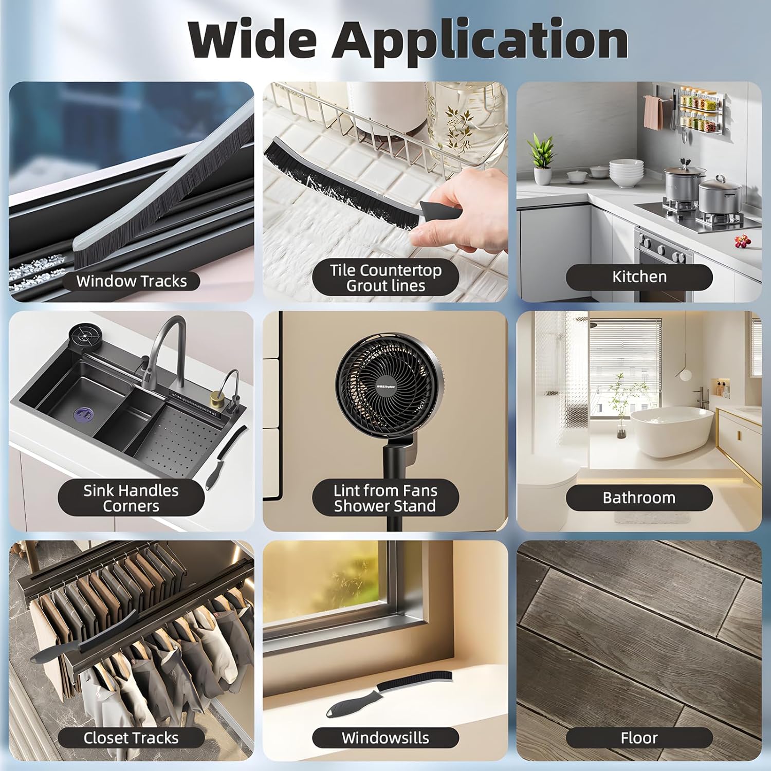 - Wide Application: A crevice brush is a cleaning tool specifically designed to clean and clear narrow crevices. Cleaning Tools for cleaning tools for window tracks, kitchen, Home, Bathtub, Bathroom, Dish, Window, Vehicle, Faucets, Toilet, Grout, Floor, Stove