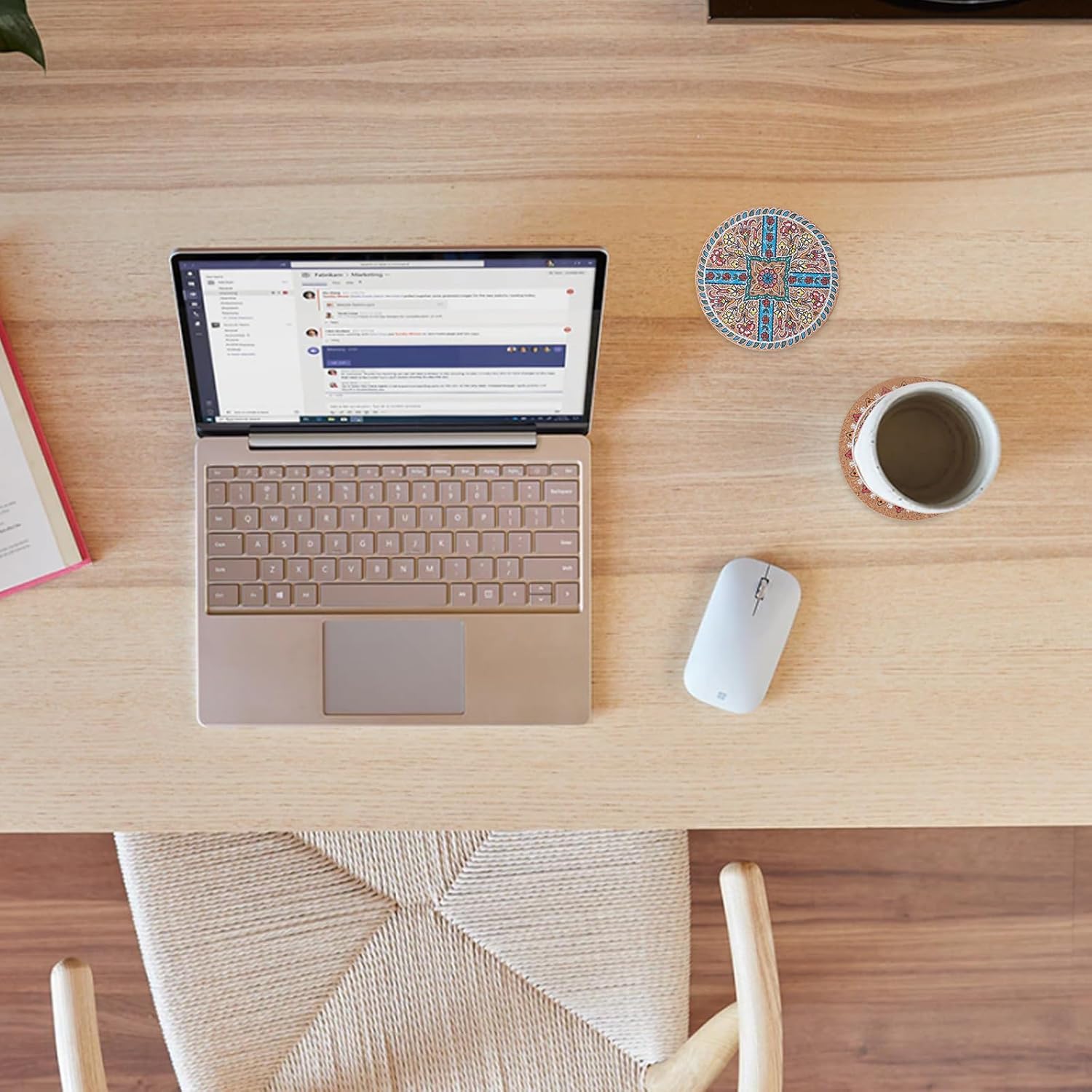 Coasters for Drinks 12 pcs Absorbent Cork Coasters with Turkish Mandala Pattrn for Coffee Table Housewarming Gifts for New Home Present for Friends, Living Room Decor, Apartment Decor