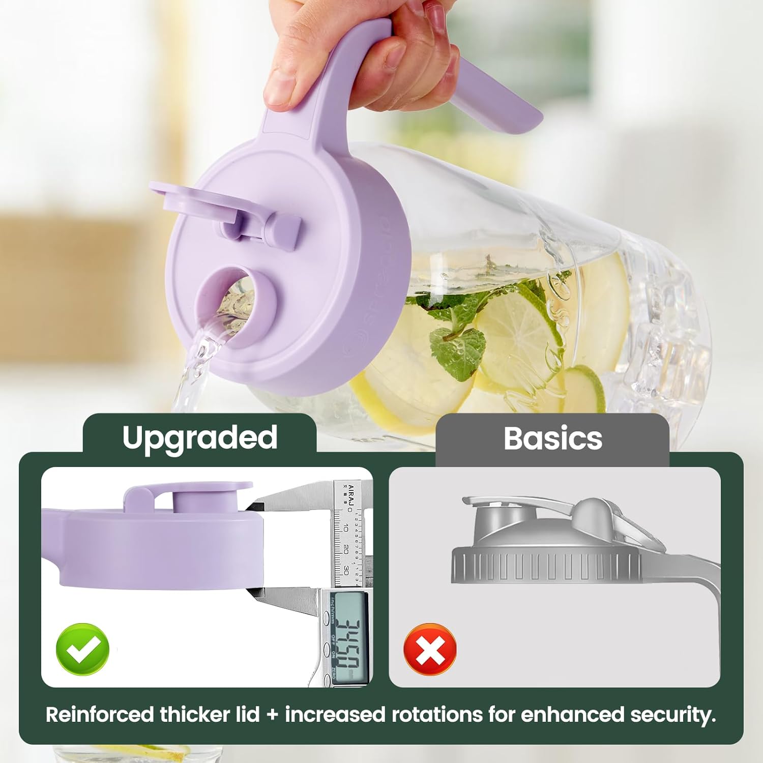 - Airtight and Leakproof Storage: Our Mason Jar Pitcher features an airtight and leakproof silicone seal, ensuring a seamless and mess-free storage experience. Keep your contents fresh and prevent leaks and drips, whether you store it in the fridge, on the counter, or in the pantry.