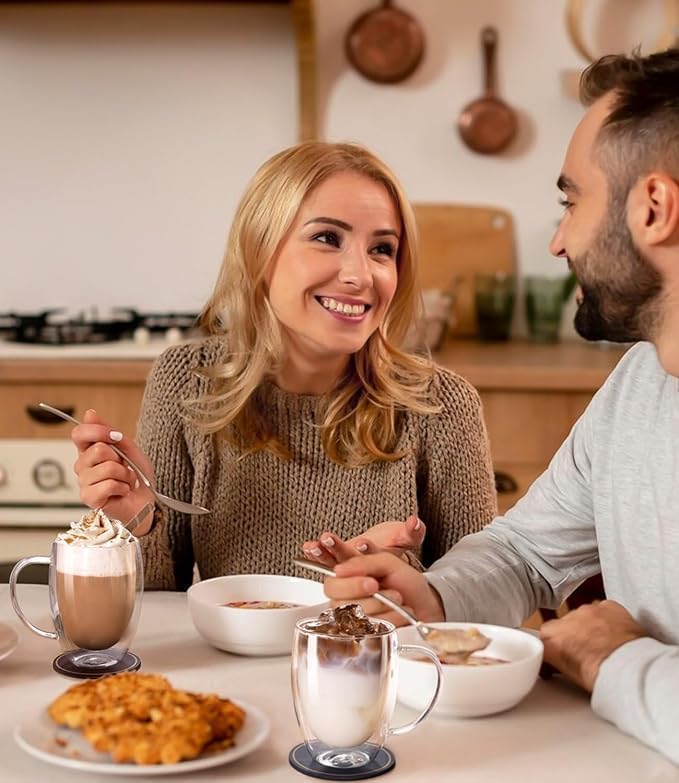 - Best Gift: Elegant and stylish glass mugs comes with coasters and gift box packaging, perfect gift for coffee or tea lovers. Give your loved ones a unique gift on wedding anniversary, Valentine's Day, Mother's Day, Christmas and let them enjoy their coffee