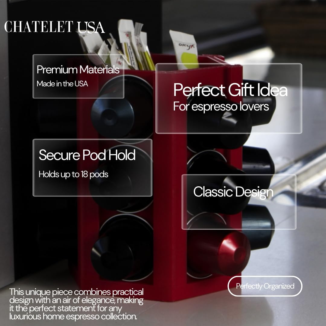 - ✅ Holds 18 Espresso Pods – Keep your favorite espresso capsules neatly organized and within easy reach in a sleek, space-saving carousel.