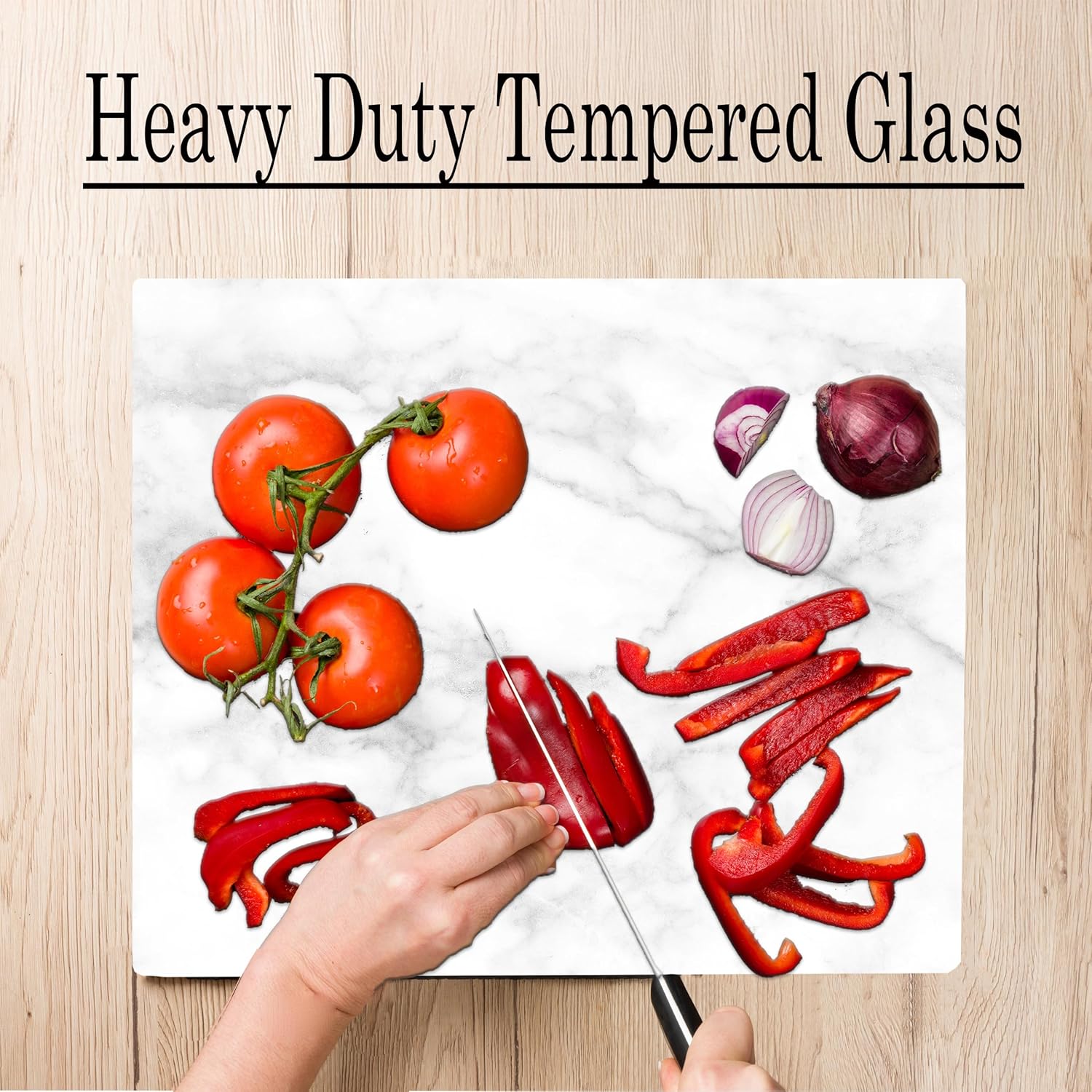 - This Heavy Duty Tempered Glass Kitchen Cutting Board Break Scratch Stain and Odor Proof Perfect For Slicing Dicing Cutting and Chopping Our Unique Marble rock or Quartz Patterns Make a Great Gift