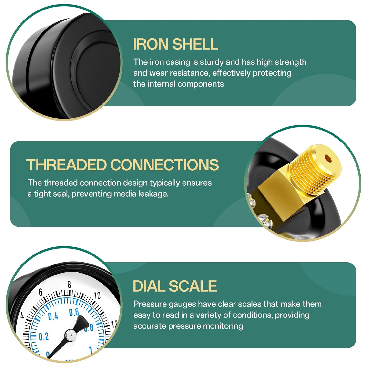 - [SIZE] 2" dial size, 1/4" NPT back mount