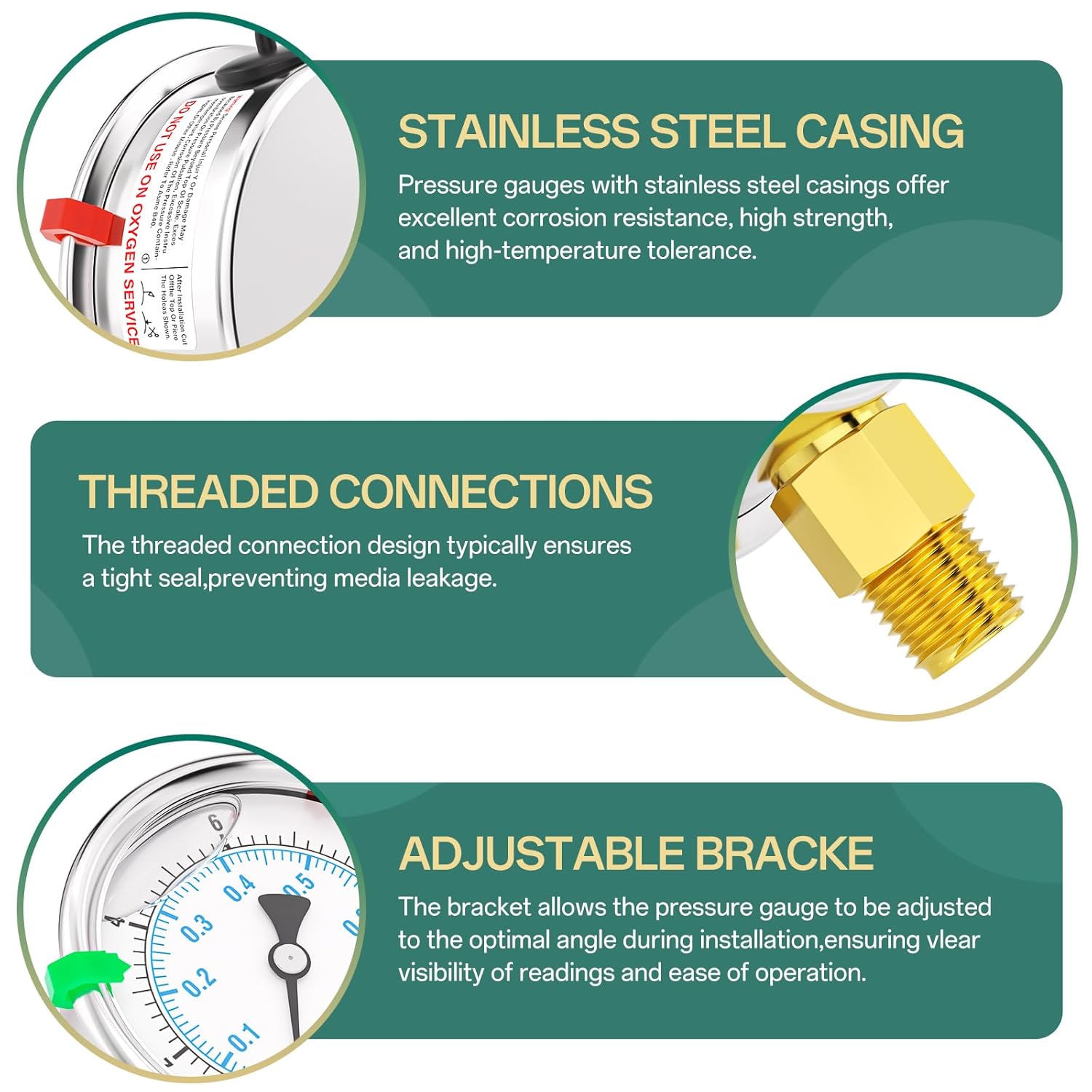 - [SIZE] 2.5" dial size, 1/4" NPT lower mount