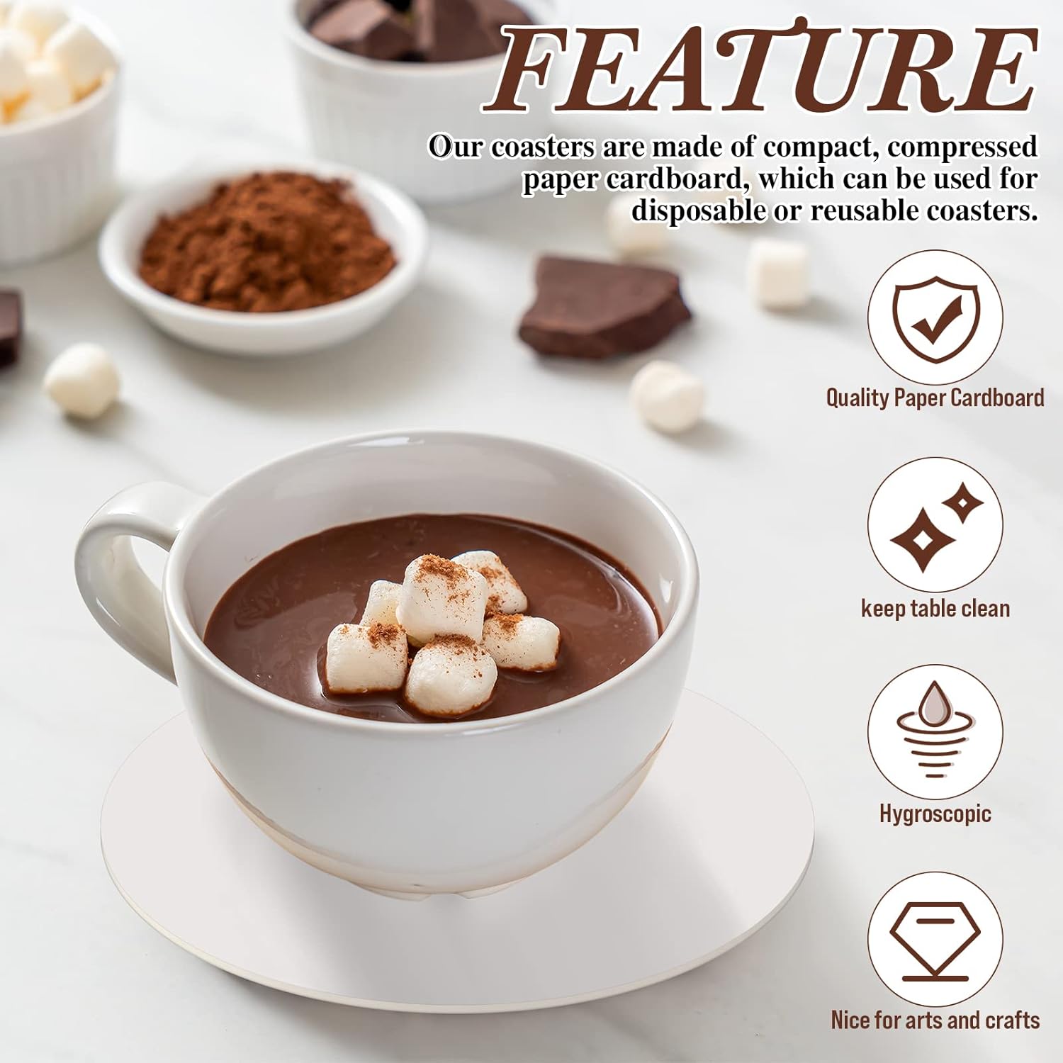 - Package Content: you will receive 100 disposable cardboard coasters, there are enough quantities to meet your needs in daily use and replacement requirements, you could use them on your own and share them with other people