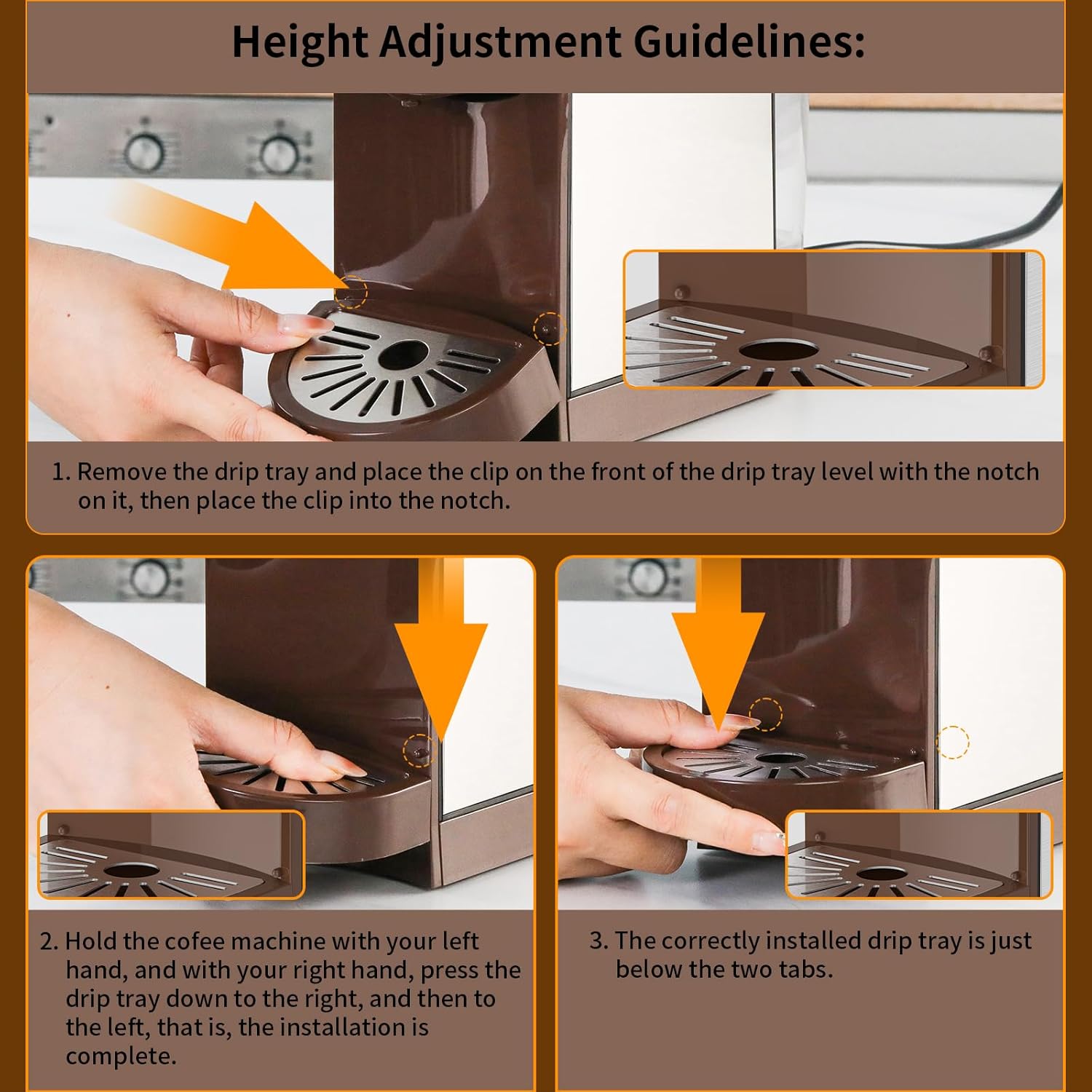 - Cup Height: Kotlie AC-513HF is Espresso Machine so it is small, compact and portable. The max-height of the machine from spout to the base is 4.53inch; and the max-height will be 5.5inch when taking away the drip tray. Please note: AC-513HF is not suitable for travel mugs