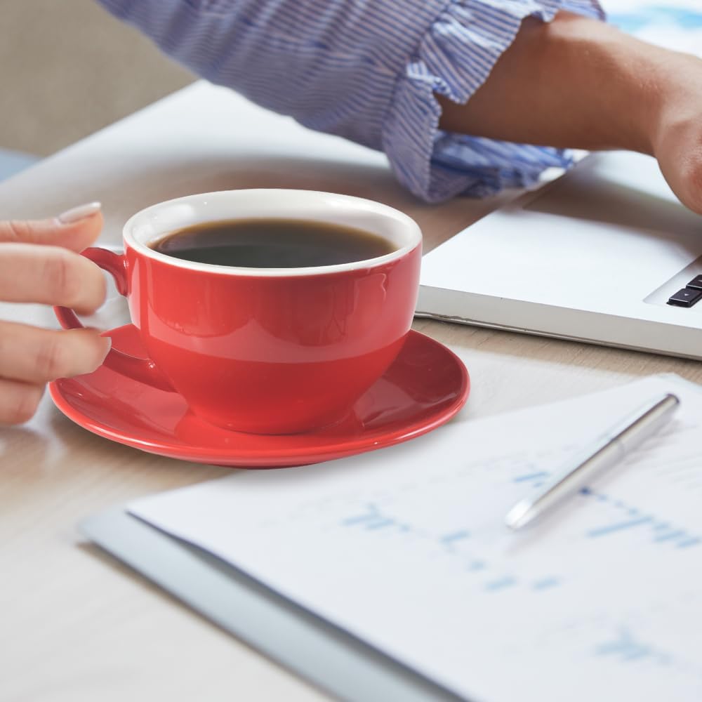 Porcelain Coffee Cup with Saucer 220ml/7.3oz for Cappuccino, Latte, and Tea, Red