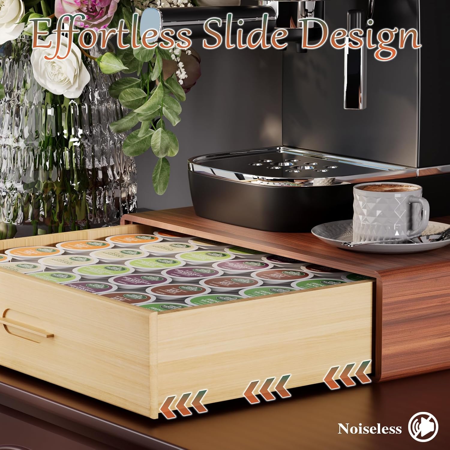 Wooden Kcup Holder for Counter,Tea and Nespresso Coffee Pod Storage Drawer,Nespresso K Cup Organizer,Keurig Pod Holder Organizer,Nespresso Coffee Bar Accessories