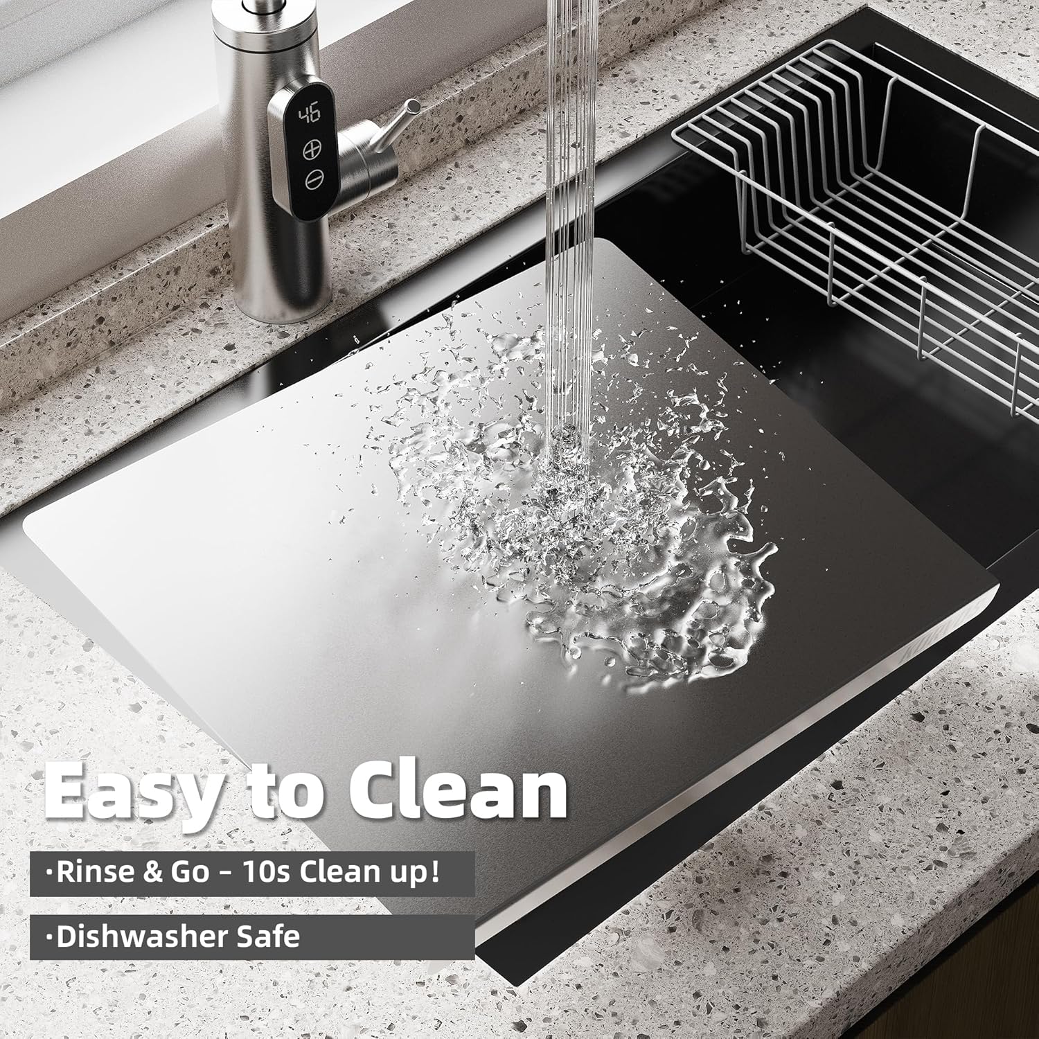 - Easy to Clean: 15.7" x 11.8" (40x30 cm) metal cutting boards for kitchen has no chemical coating and is safe for all kinds of food preparation, including raw meats and vegetables. Simply rinse with soapy water or place in the dishwasher for quick and hygienic cleaning after use