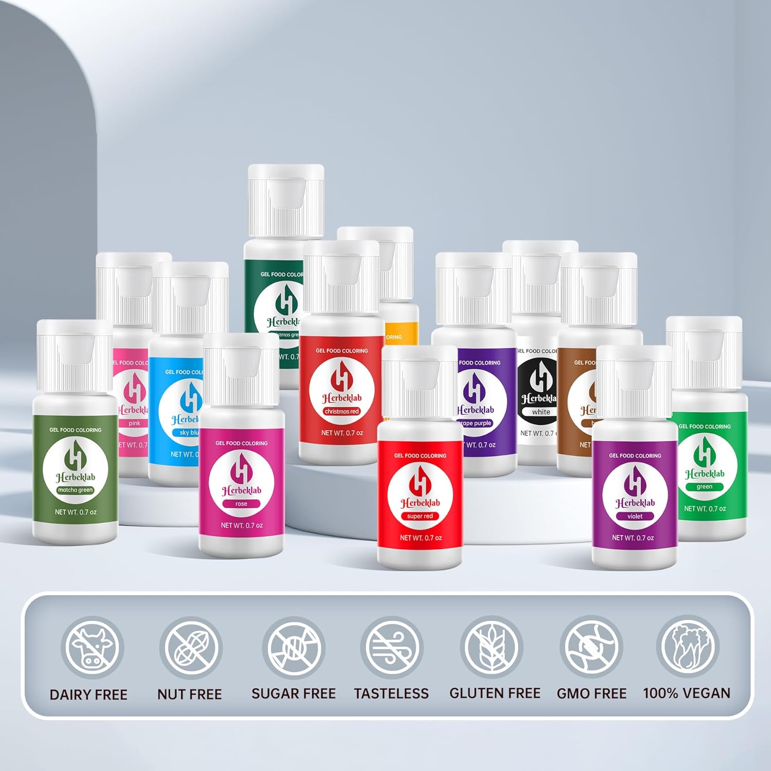 - Food Grade Ingredients - The gel food coloring kit is made from high quality food grade ingredients, it is dairy free, gluten free, peanut free and non-GMO. The food coloring only adds vibrant color to food, does not add any flavor or change texture, and is safe for vegetarians to consume.