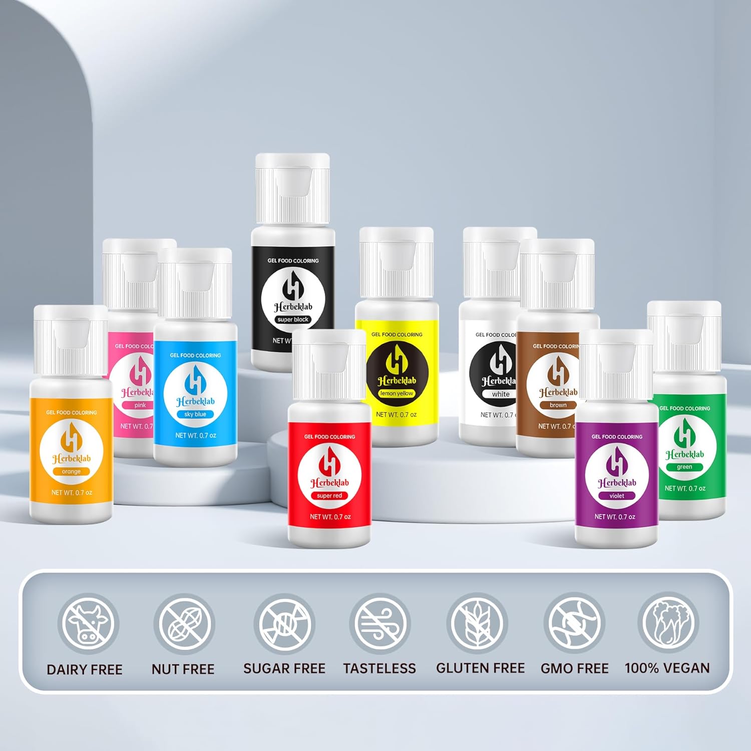 - Vibrant Gel Food Coloring: Unleash your creativity with gel food coloring including super red, pink, sky blue, violet, orange, green, lemon yellow, super black, white, brown. Each of the food coloring gel bottle contains 0.7 oz. of color. Whether you're a professional baker or a home enthusiast, you'll have vibrant hues to bring your culinary creations to life