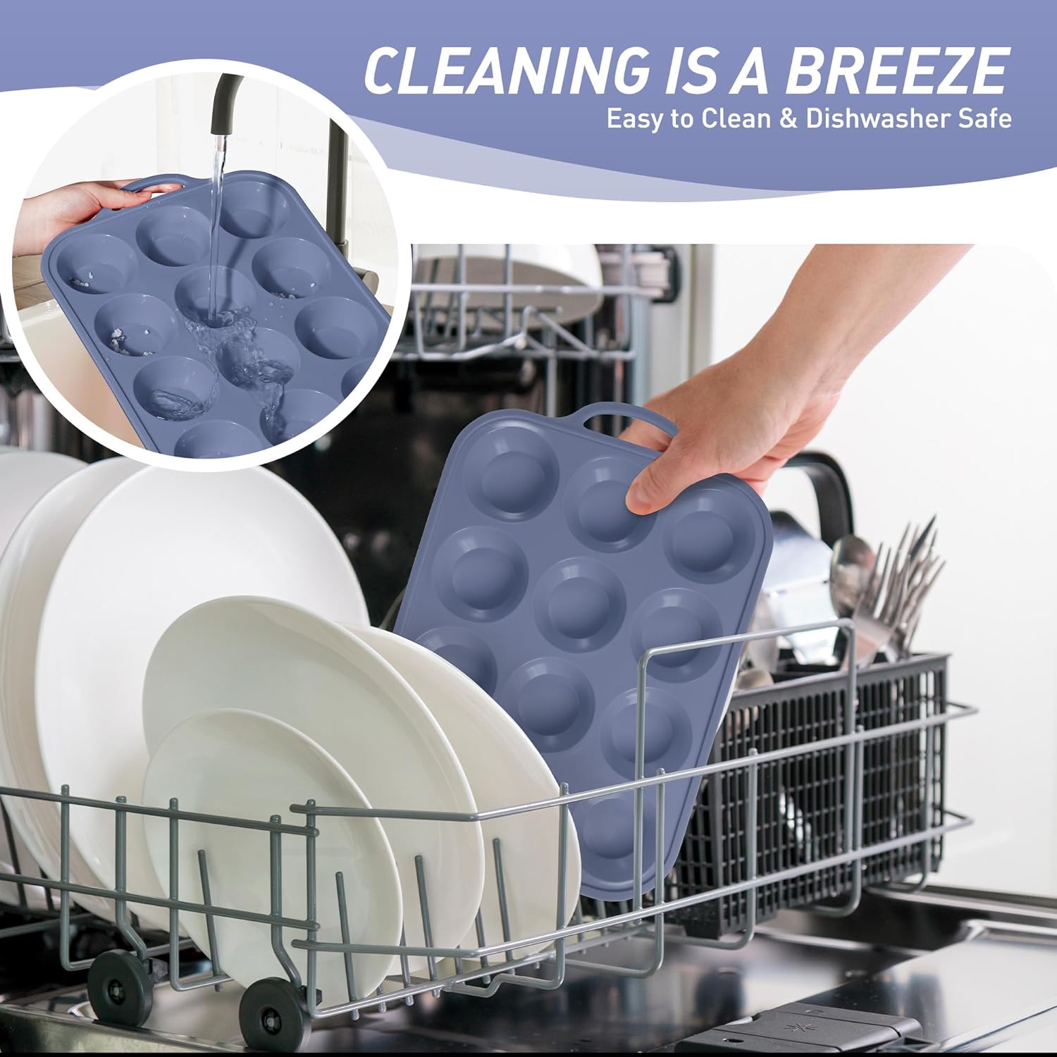 - 【Food Grade Silicone Muffin Tray】Safe for the oven, microwave, dishwasher, fridge, and freezer. With an impressive heat resistance range from -104°F to 446°F, it’s perfect for all your favorite baked goods. Oven-safe handles withstand repeated baking cycles without cracking, unlike cheaper silicone baking cupcake muffin pan with plastic components. Food grade silicone of our muffin pan with anti fouling and anti staining properties, tested over 1000 times and still maintains 99% freshness.