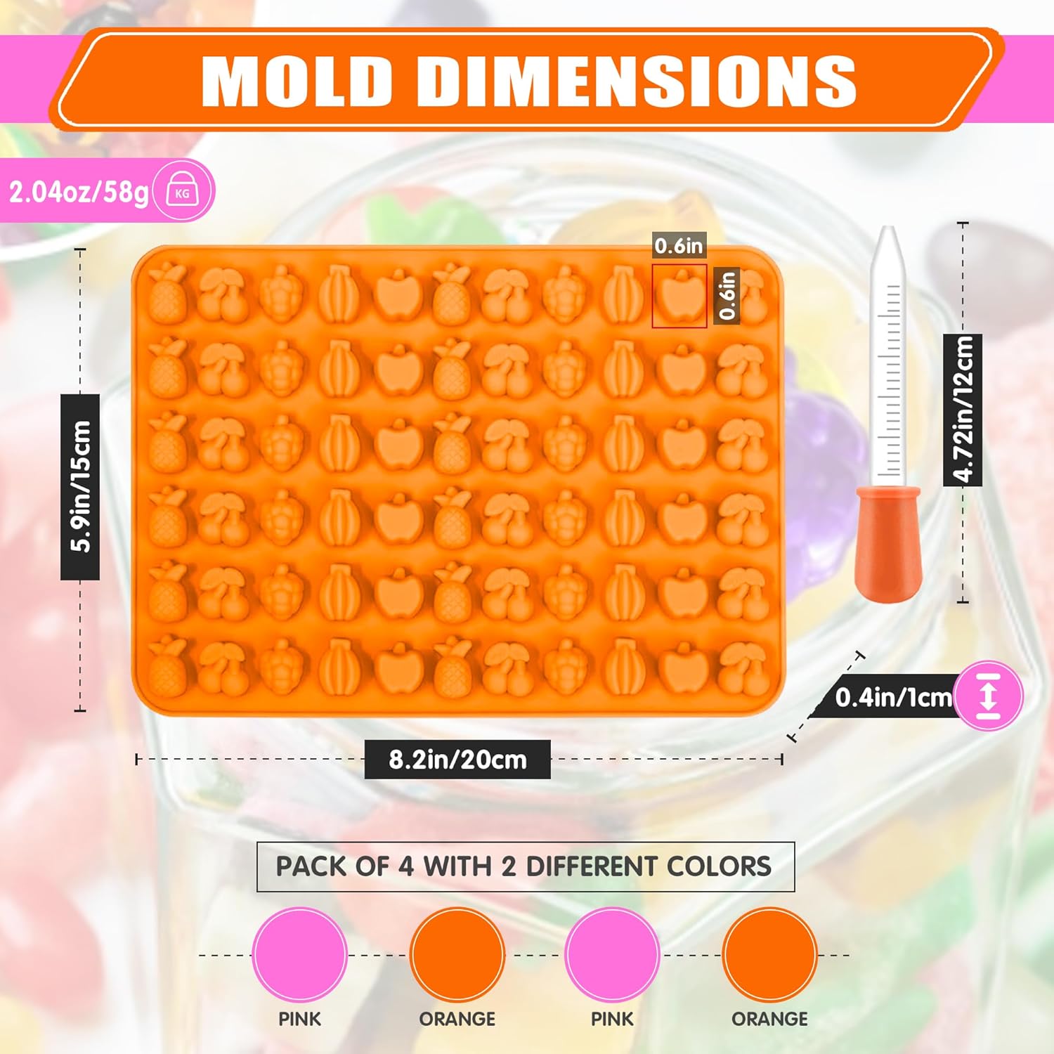 - 【Have A Great Time Making Candy】Making fruit snacks is a great afternoon activity, and the set of 5 fruit snack molds and droppers is enough to get you and your family involved. Keep the kids busy and entertained for an unforgettable bonding experience.
