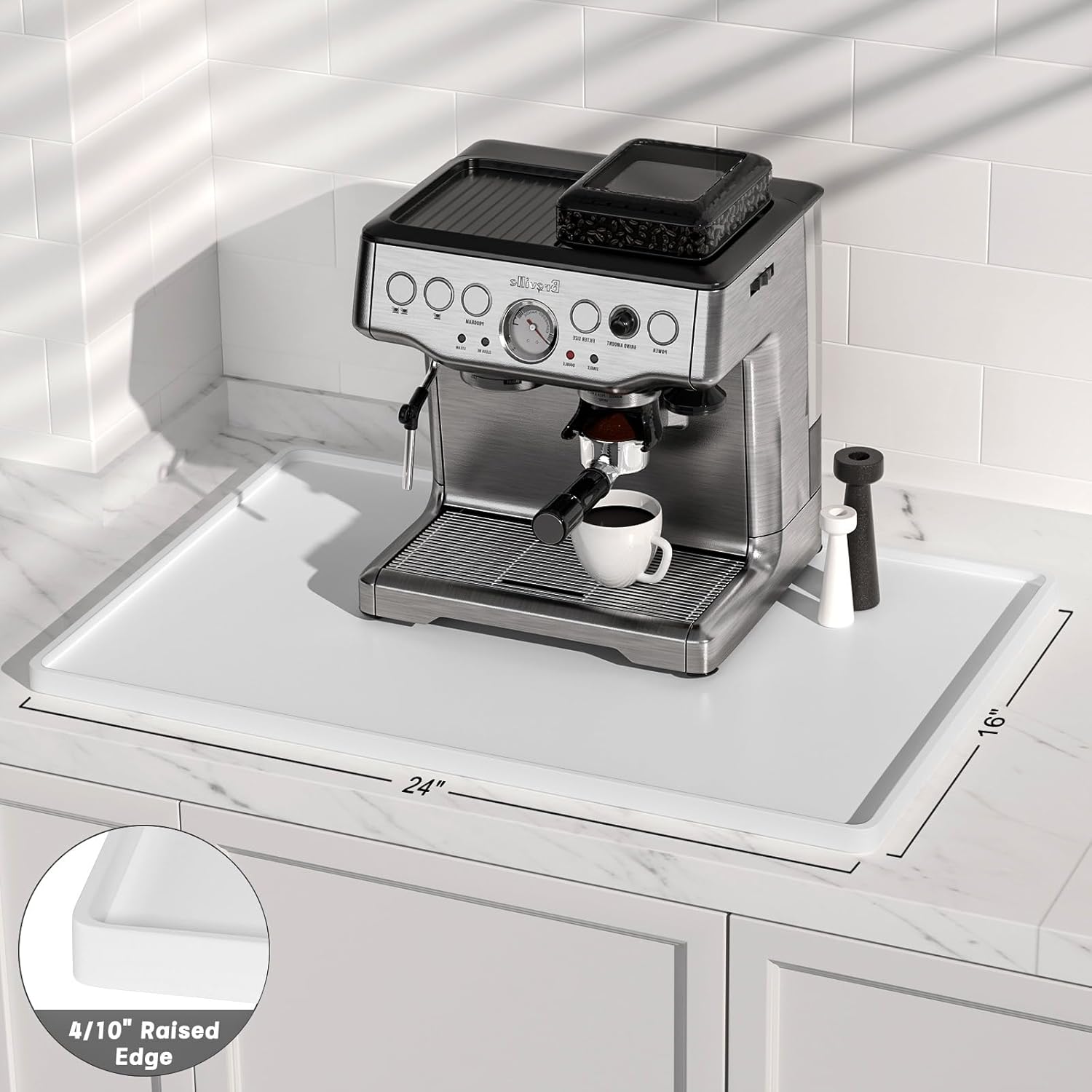 - Multi-Use Silicone Mat for Coffee & Kitchen: Fits 16"x24" espresso machines (Breville/De'Longhi). Use as pet food mat, blender pad, or dish drying mats for kitchen counter. A barista-approved essential for homes, cafes, and RVs – where mess meets style