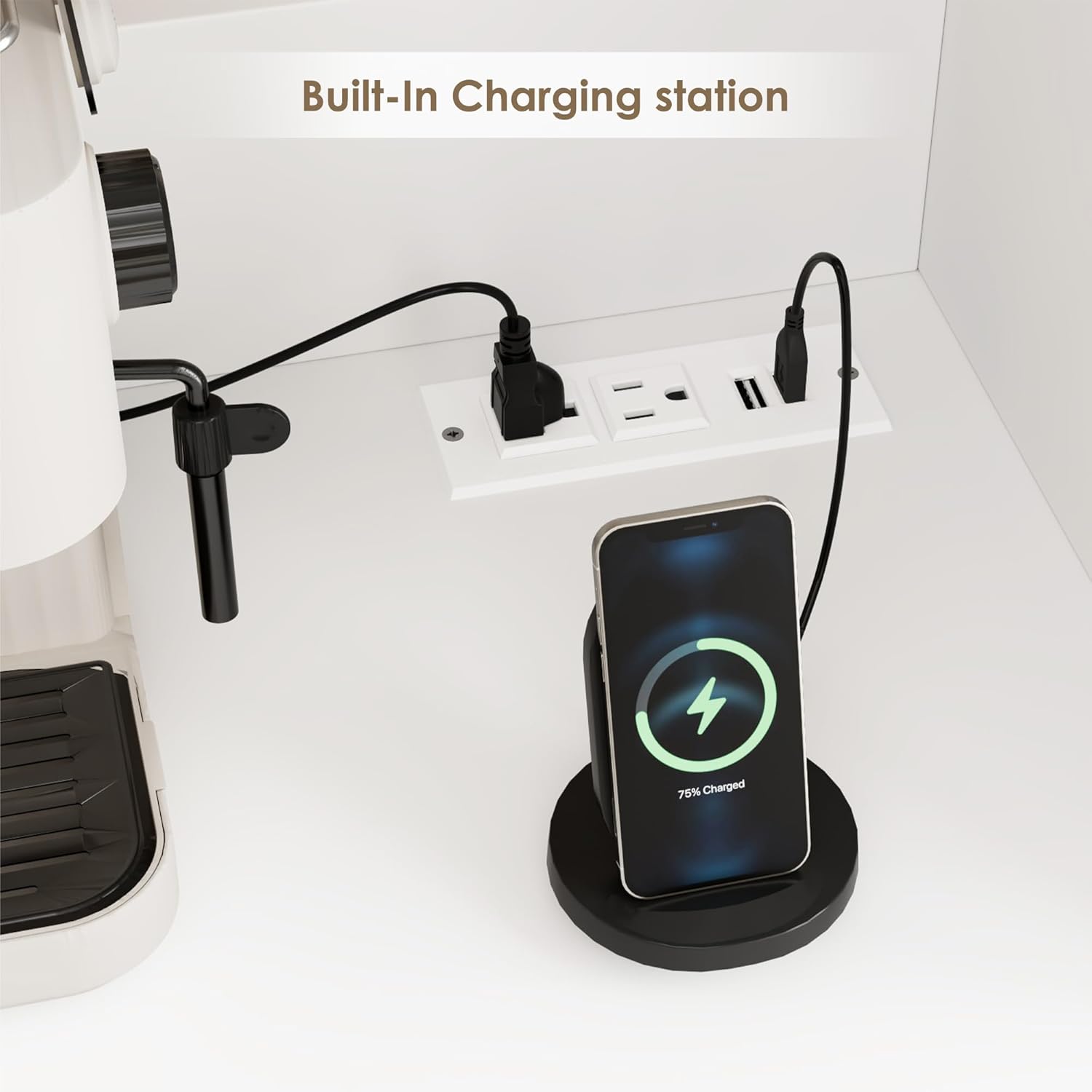 - SPACIOUS COUNTERTOP WITH CHARGING STATION: This kitchen pantry cabinet boasts a 47.2"W x 20.3"H countertop, providing ample space for all your essentials. Designed with convenience in mind, it includes 2 AC power outlets and 2 USB ports, making it easy to power and charge appliances such as coffee makers, ice makers, microwaves, toasters, and more. Whether you're preparing your morning brew or hosting a gathering, this cabinet meets all your needs. Sit back, sip, and savor the moment