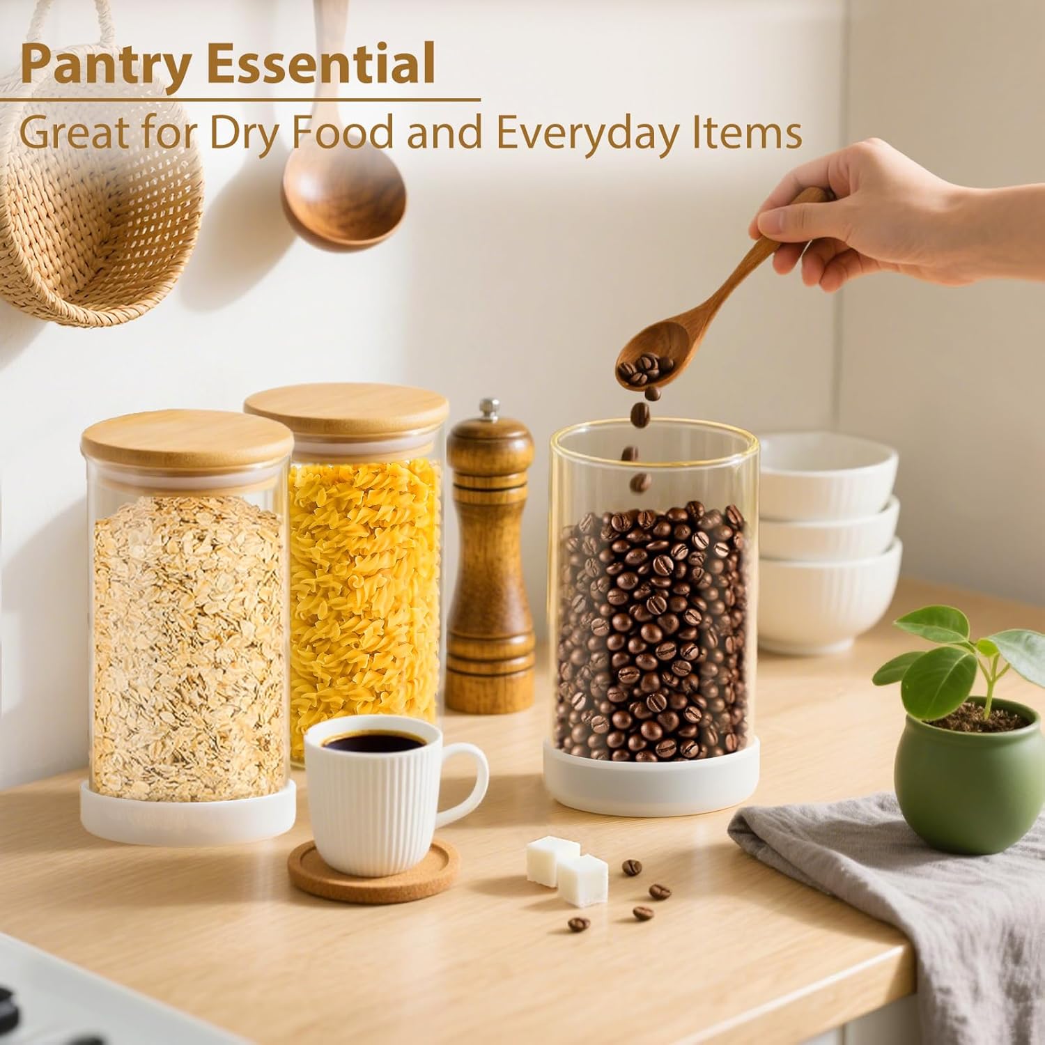 - Large Capacity & Clear Visibility – Each round glass jar holds 53oz(≈1.56L), perfect for storing flour, pasta, rice, coffee beans, cookies, and other pantry staples. The crystal-clear glass lets you easily see contents at a glance, keeping your kitchen tidy and well-organized.