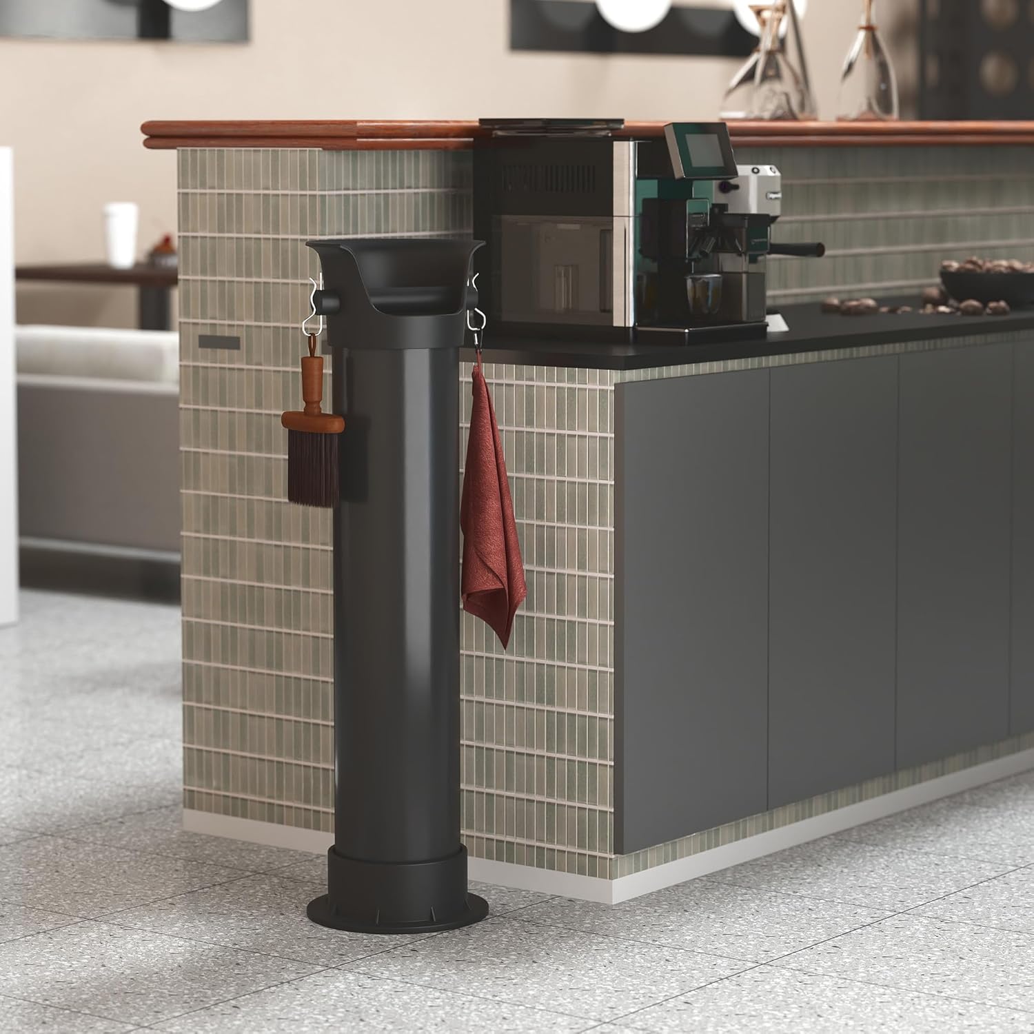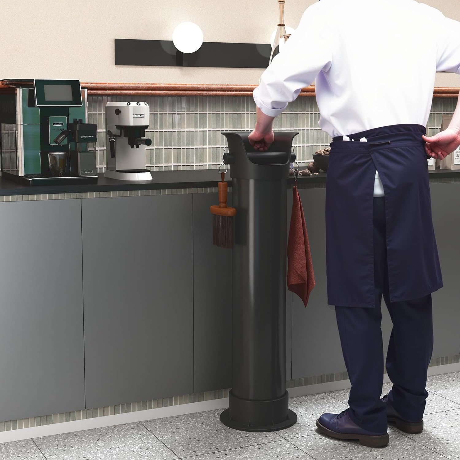 - Space Saving and Versatile Knock Waste Dump Bin: With a slim cylindrical design and just 8.46" in diamater, it takes up less space beside your workplace, while still offering ample room for collecting coffee pucks, grounds waste, tea leaves and food scraps. It's a great fit for cafés, bars, coffee shops, restaurants, and home bars alike