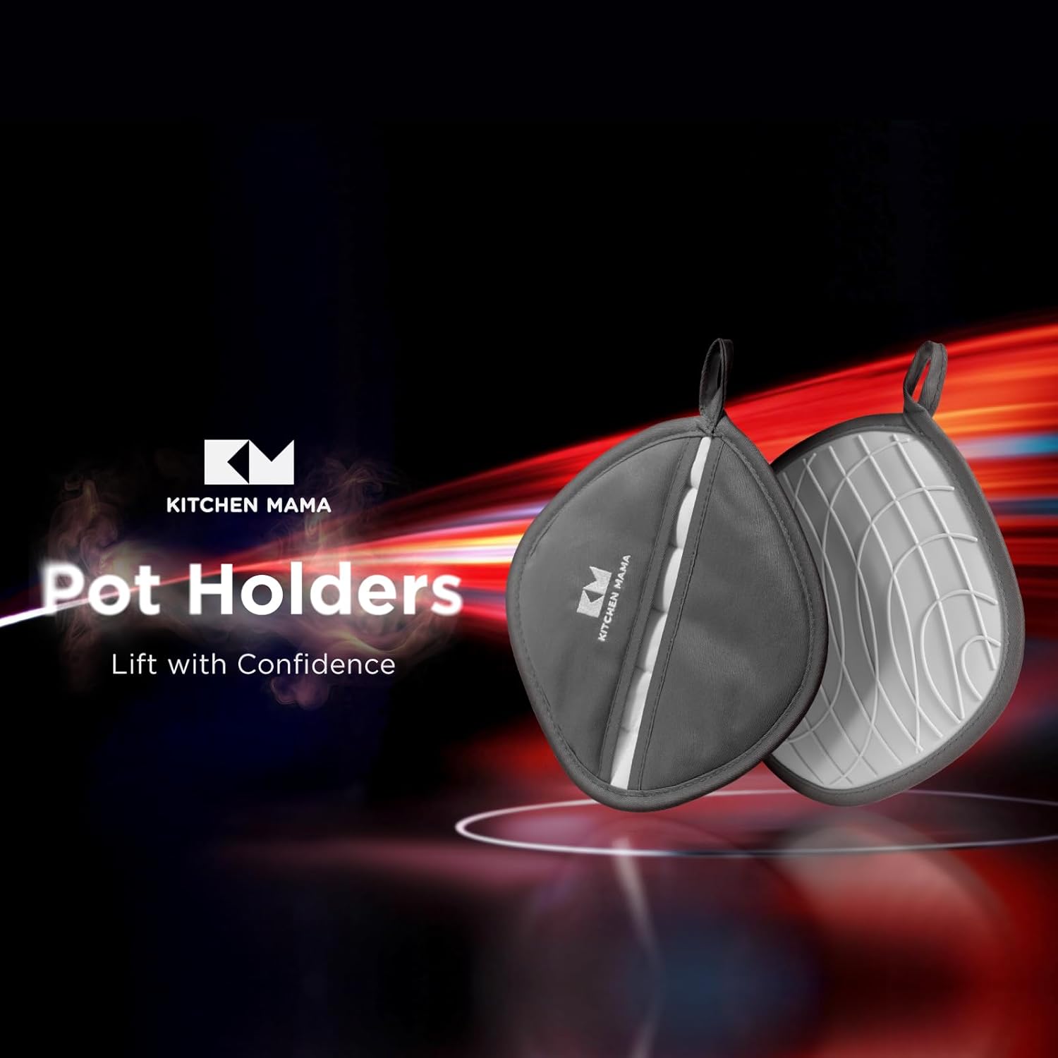 Kitchen Mama Silicone Pot Holders - Heat Resistant, Non-Slip Surface, Dual Pocket Design with Soft Cotton Lining, Safe, Durable, Stylish, Practical for Everyday Use Hot Oven, Bowl, Pan (Metal Gray)