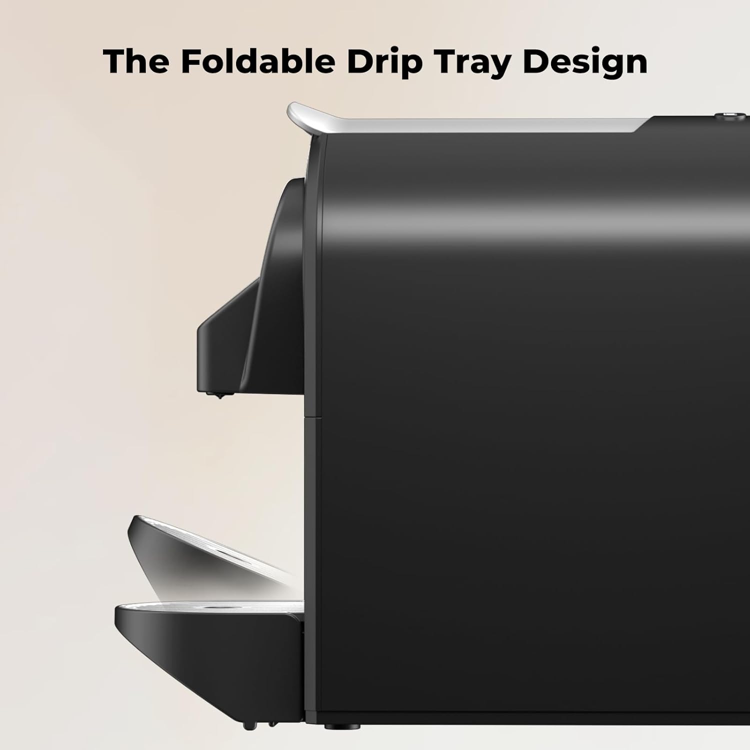 - Simple Operation, Hassle-Free Cleanup: Just lift lid, insert a pod, press lid down and select brewing mode - espresso with rich crema is ready in 20s. The foldable drip tray for the different cup's height. Detechable water tank, drip tray and capsule container for easy cleaning