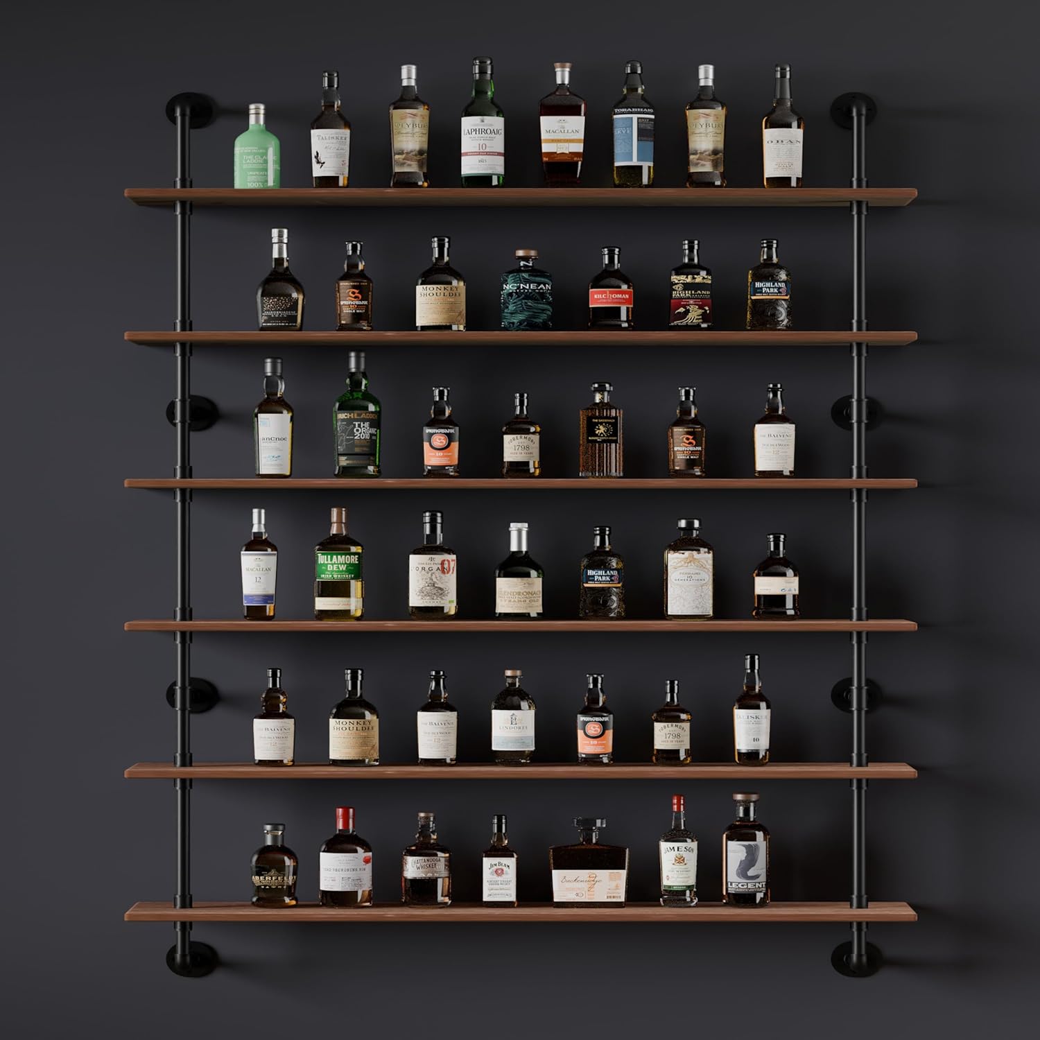 - 【Black metal pipe and solid wood 】Good rustic look solid wood industrial Pipe shelf with black metal pipes.The tubing is all metal and has a very rustic finish and the wood is a solid piece. This industrial pipe shelving is very very stable and solid on the wall,Fits right in with Your farmhouse vibe.