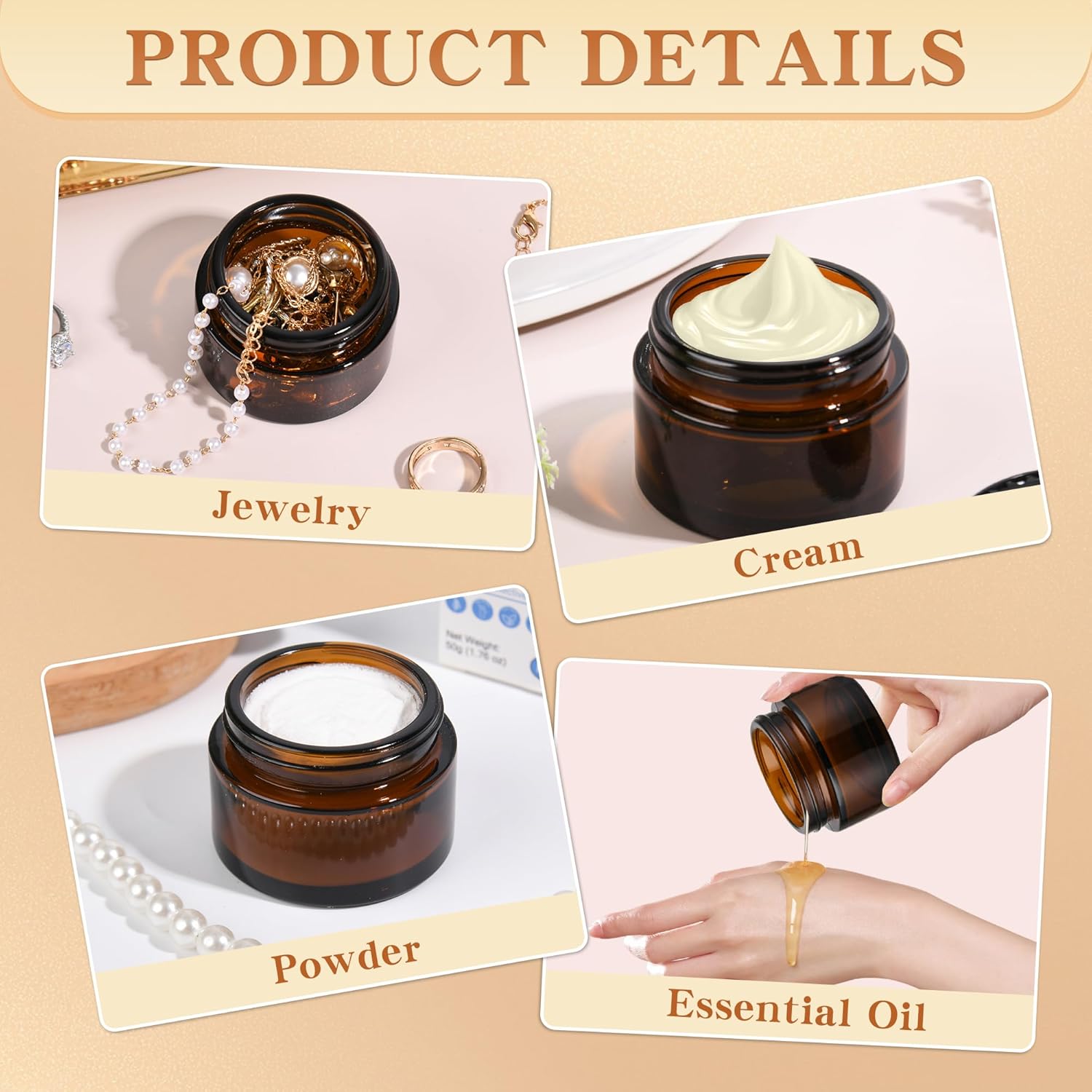 Glass Jars with Lids,Eco-Friendly Cosmetic Containers with Airtight Black Lids & Liners, Multi-Color Options for Cream, Lotion, Body Butter, DIY Skincare Travel Jars (Amber, 1oz)