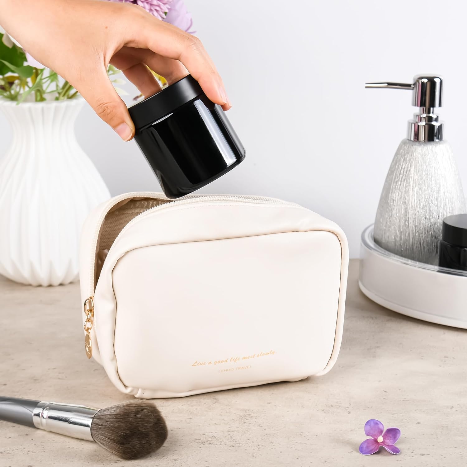 - 【Travel-Ready & Mess-Free】fits in purses and toiletry bags. Threaded lids prevent slipping, while raised jar bottoms protect against spills – ideal for gym, flights, or camping trips.