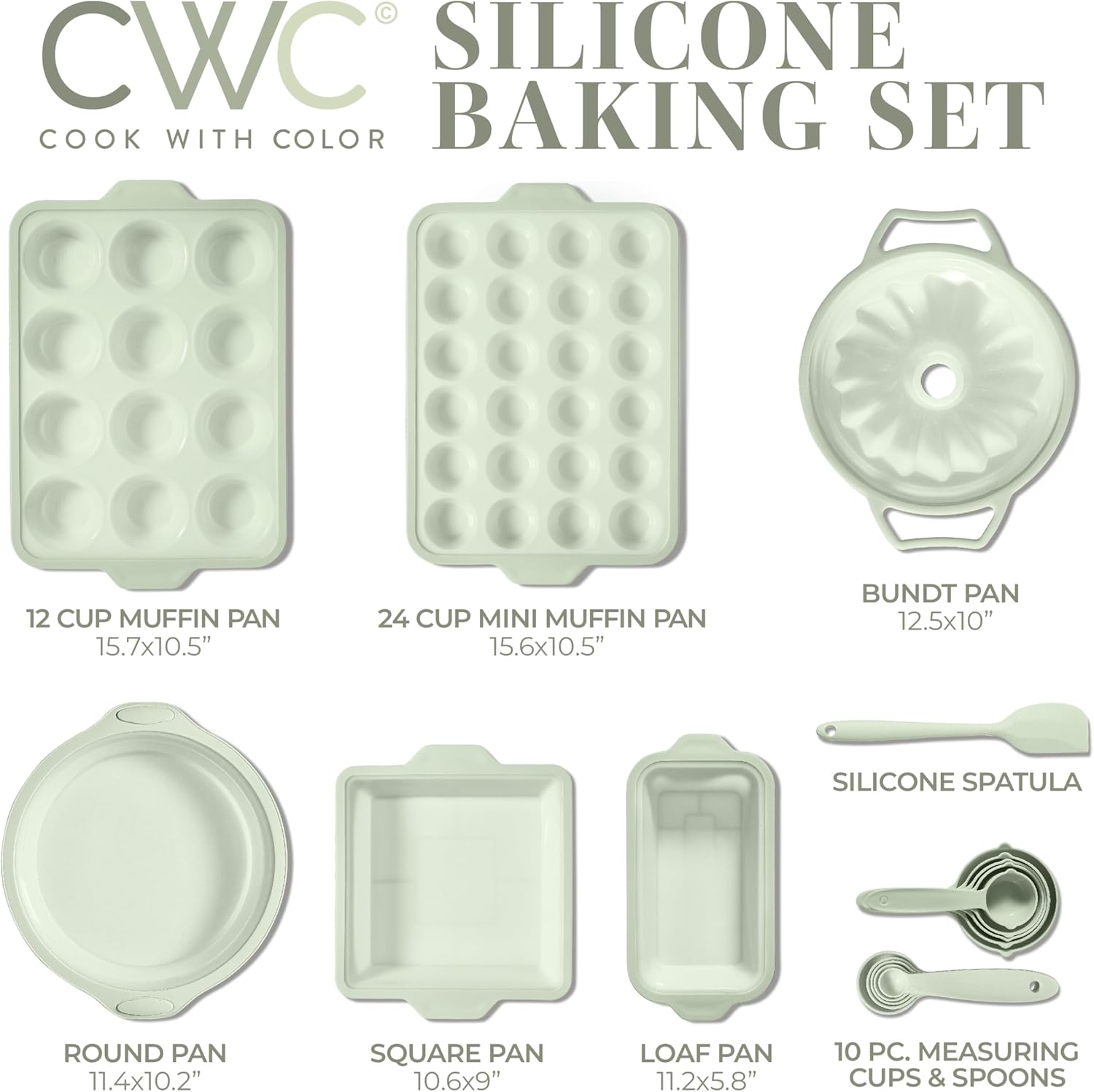 COOK WITH COLOR 17 Pc. Silicone Baking Pan Set - Non-Stick & Easy Clean Silicone Muffin Pans for Baking with Sturdy Metal Frame for Stability, Flexible Cake Molds, Includes Measuring Cups and Spoons